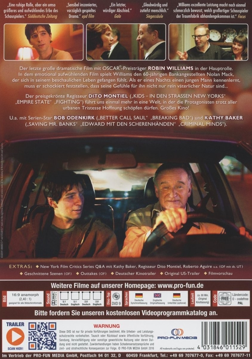 Este drama sobre el matrimonio y las mentiras narra la historia de Nolan Mack (Robin Williams), un afectuoso marido que se ve obligado a enfrentarse a sus secretos después de conocer a un joven llamado Leo (Roberto Aguire).