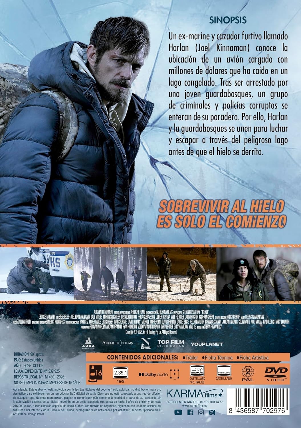https://back.dvdstorespain.es/es/peliculas/129248-icefall-dvd-2026--8436587702976.html129248Icefall [DVD] (2025)Un exmarine y cazador furtivo llamado Harlan (Joel Kinnaman) descubre un avión cargado con millones de dólares que ha caído en un lago congelado. Tras ser arrestado por una guardabosques nativa, un grupo de criminales y policías corruptos se enteran de su paradero. Por ello, Harlan y la ranger se unen para luchar e intentar escapar a través del peligroso lago antes de que el hielo se derrita.https://dvdstorespain.es/1128445-home_default/icefall-dvd-2026-.jpg12.3141instock12.314112.3141002026-02-11T19:45:10+0100/Inicio/Inicio/DVD/Inicio/Películas/Inicio/Nuevos