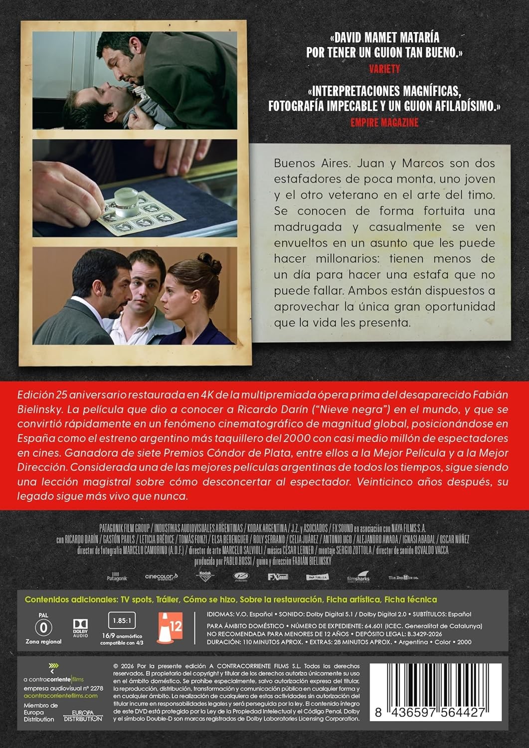 https://back.dvdstorespain.es/es/peliculas/129255-nueve-reinas-dvd-2026--8436597564427.html129255Nueve Reinas [DVD] (2000)Buenos Aires. Juan y Marcos son dos estafadores de poca monta, uno joven y un veterano en el arte del timo, que casualmente se ven envueltos en un asunto que les puede hacer millonarios: tienen menos de un día para hacer una estafa que no puede fallar.https://dvdstorespain.es/1128466-home_default/nueve-reinas-dvd-2026-.jpg12.3141instock12.314112.3141002026-02-11T19:46:13+0100/Inicio/Inicio/DVD/Inicio/Películas/Inicio/Nuevos