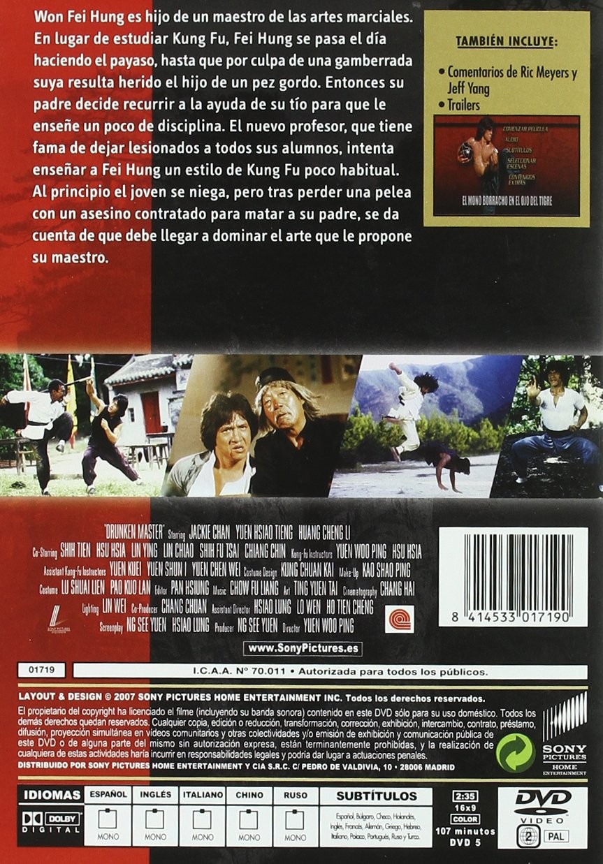 https://back.dvdstorespain.es/es/peliculas/129409-el-mono-borracho-en-el-ojo-del-tigre-jackie-chan-dvd-2002--8414533017190.html129409El Mono Borracho en el Ojo del Tigre [DVD] (1978) Jui kuenWong Fei Hung es hijo de un gran maestro de Kung Fu de la cuidad. Pero, aunque es bueno, en lugar de estudiar Kung Fu se pasa el día haciendo el payaso, hasta que por culpa de una gamberrada suya resulta herido el sobrino de un pez gordo de la zona. Entonces su padre decide recurrir a la ayuda de su tío para que le enseñe un poco de disciplina. https://dvdstorespain.es/1132669-home_default/el-mono-borracho-en-el-ojo-del-tigre-jackie-chan-dvd-2002-.jpg5.2893instock5.28935.2893002026-02-23T18:15:28+0100/Inicio/Inicio/DVD/Inicio/Películas/Inicio/Nuevos