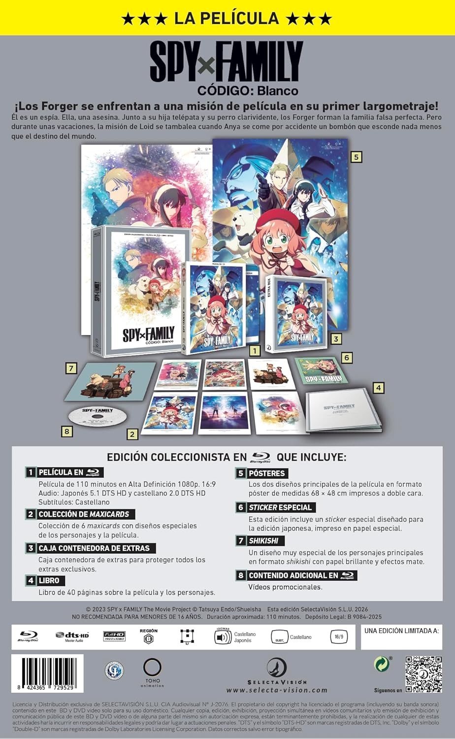 https://back.dvdstorespain.es/es/peliculas/129893-spy-family-codigo-blanco-bluray-coleccionista-pelicula-blu-ray-2026--8424365729529.html129893Spy X Family Código: Blanco (Coleccionista) [Blu-ray] (2023) GekijōbanPelícula de la serie anime 'Spy×Family'. Él es un espía. Ella es una asesina. Juntos, Loid y Yor se guardan su doble vida para sí mismos mientras pretenden ser la familia perfecta. Sin embargo, su hija adoptiva Anya, una telépata, conoce apasionantes secretos de ambos sin que ellos lo sepan. Con el pretexto de llevar a su familia a una escapada de fin de semana invernal, el intento de Loid de avanzar en su misión actual, la Operación Strix, resulta difícil cuando Anya se involucra por error y desencadena eventos que amenazan la paz mundial. https://dvdstorespain.es/1140013-home_default/spy-family-codigo-blanco-bluray-coleccionista-pelicula-blu-ray-2026-.jpg53.6364instock53.636453.6364002026-02-27T14:15:33+0100/Inicio/Inicio/Blu-ray/Inicio/Películas/Inicio/Nuevos