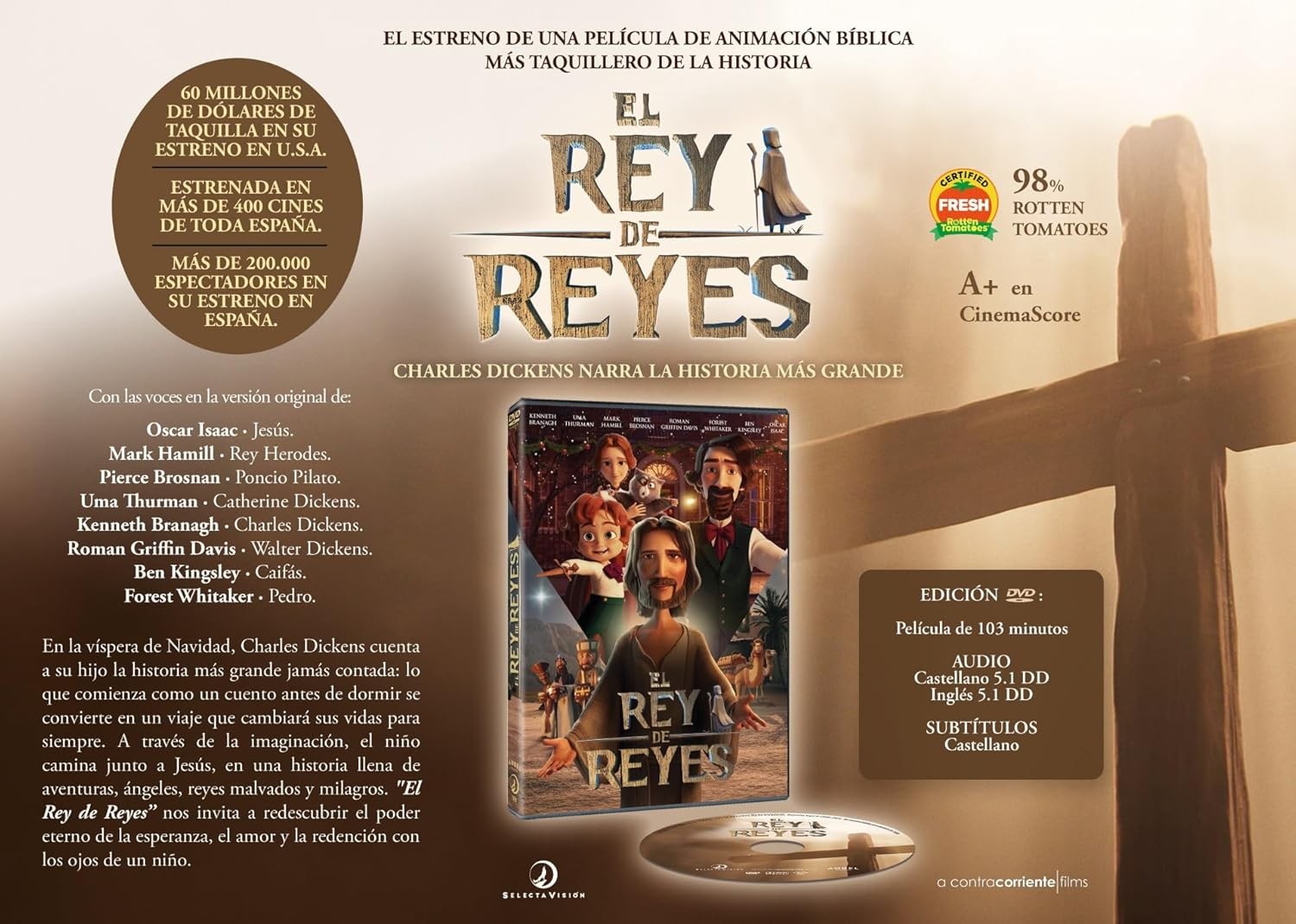 https://back.dvdstorespain.es/es/peliculas/129903-el-rey-de-reyes-pelicula-dvd-2026--8424365731591.html129903El Rey de Reyes [DVD] (2025) The King of KingsLa historia de Jesucristo contada por Charles Dickens y vista a través de los inocentes ojos de un niño. Al famoso narrador Charles Dickens le resulta difícil establecer un vínculo con su imaginativo hijo, Walter, debido a su ajetreada carrera. Después de que Walter interrumpa una de las lecturas de Dickens, éste decide compartir con él la historia de Jesucristo, con la esperanza de salvar la distancia que los separa. A medida que Dickens narra la historia, Walter queda cautivado y experimenta vívidamente los acontecimientos de la vida de Jesús. A través del viaje de Jesús, la relación entre Walter y Dickens se profundiza, culminando en un vínculo de amor forjado a través de la narración.https://dvdstorespain.es/1140050-home_default/el-rey-de-reyes-pelicula-dvd-2026-.jpg9.9174instock9.91749.9174002026-02-27T14:16:55+0100/Inicio/Inicio/DVD/Inicio/Películas/Inicio/Nuevos