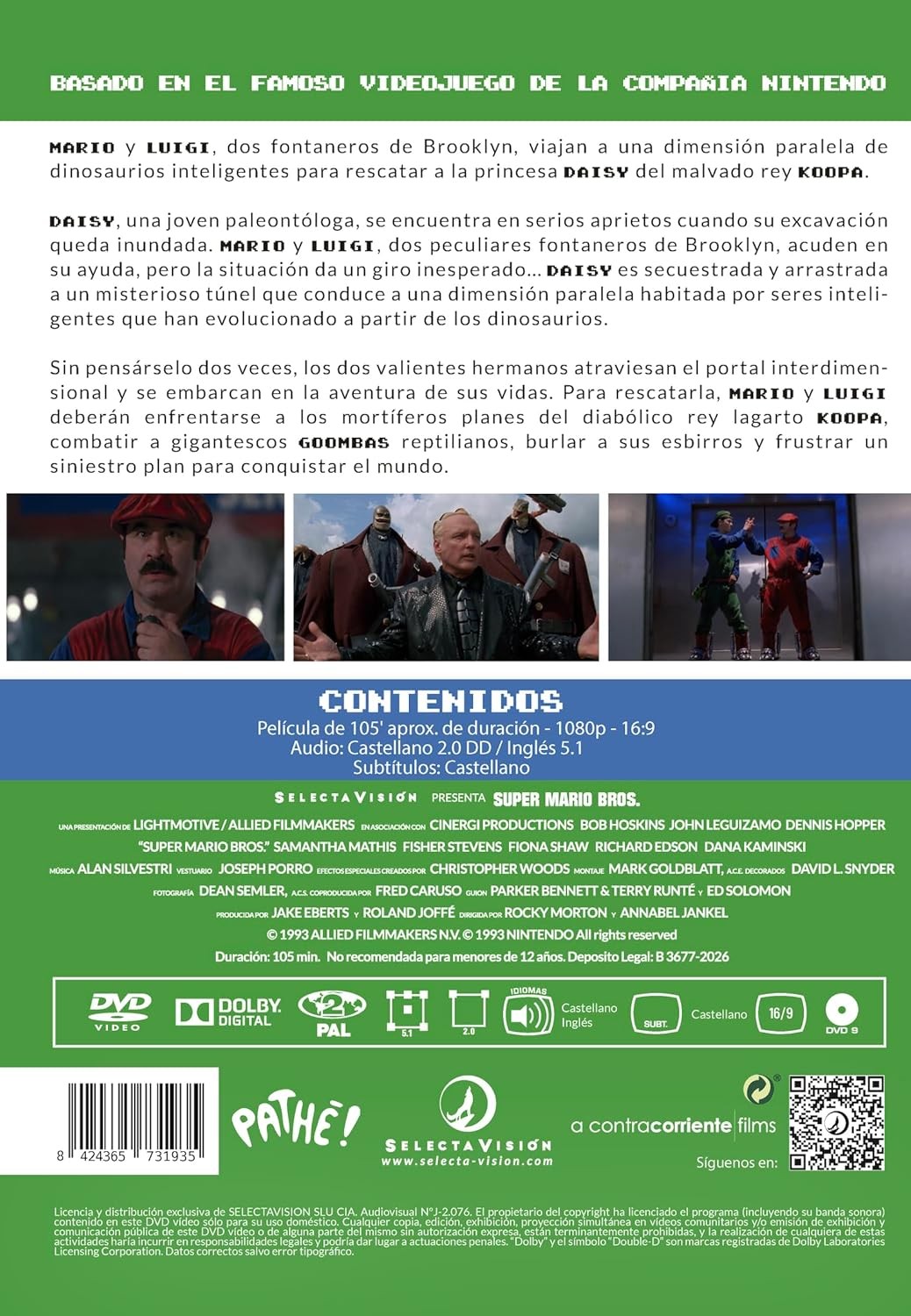 https://back.dvdstorespain.es/es/peliculas/129907-super-mario-bros-dvd-pelicula-dvd-2026--8424365731935.html129907Super Mario Bros [DVD] (1993)Basada en el famoso videojuego de la compañía Nintendo. Dos hermanos fontaneros se adentran en un mundo paralelo para salvar a la princesa Daisy de las garras del rey Koopa y su ejército de reptiles. https://dvdstorespain.es/1140065-home_default/super-mario-bros-dvd-pelicula-dvd-2026-.jpg9.9174instock9.91749.9174002026-02-27T14:17:27+0100/Inicio/Inicio/DVD/Inicio/Películas/Inicio/Nuevos