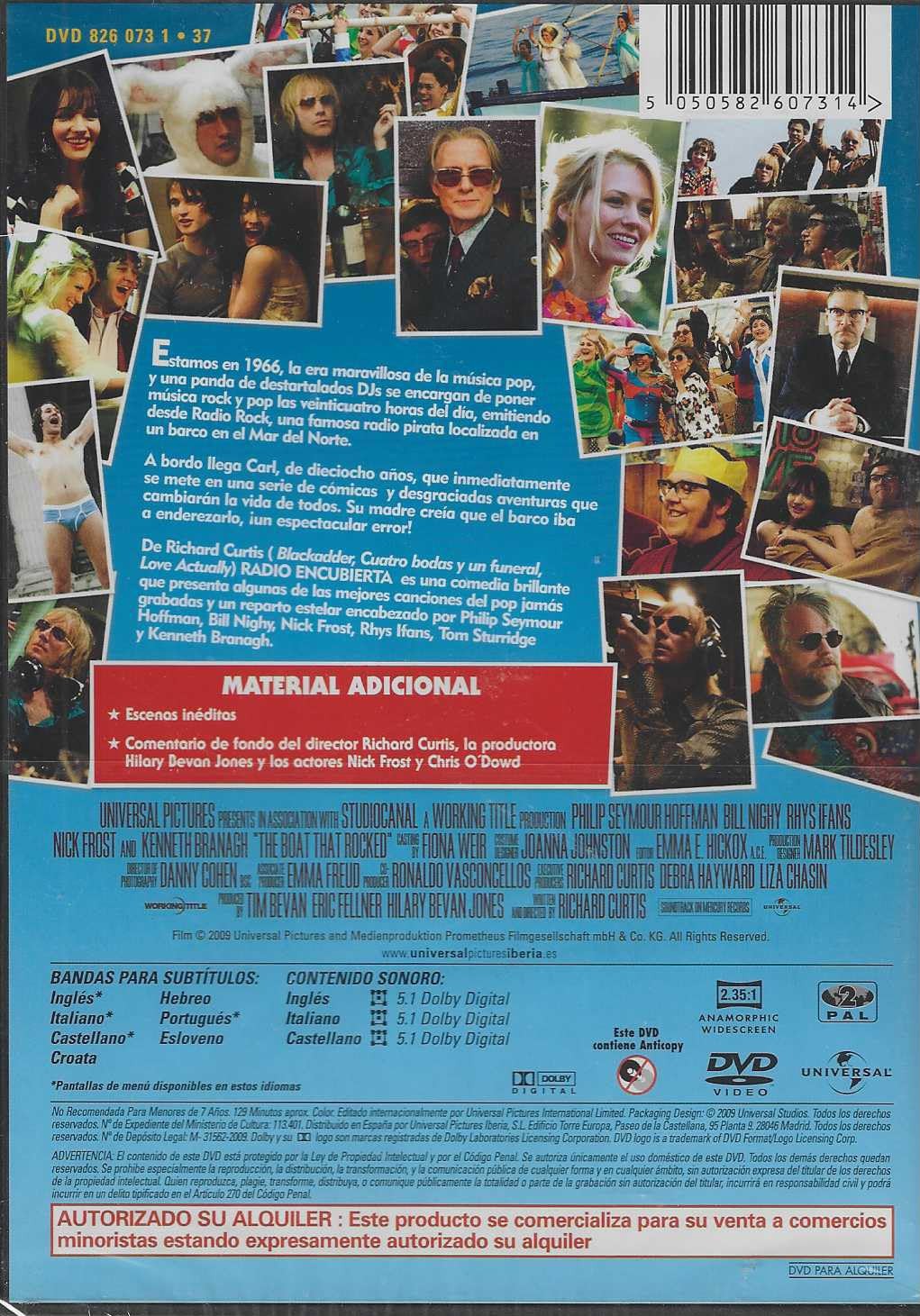 https://back.dvdstorespain.es/es/peliculas/129953-radio-encubierta-dvd-dvd-2024--5050582607314.html129953Radio Encubierta [DVD] (2009) The Boat That RockedInglaterra, años 60. Narra la historia de Radio Rock, una emisora pirata. En 1966, la BBC sólo emitía dos horas de rock and roll a la semana. Pero la Radio Rock, que inundaba el país de rock y pop 24 horas al día, consiguió una audiencia de 25 millones de personas, más de la mitad de la población. Cuando Carl (Tom Sturridge) es expulsado del colegio, su madre lo manda a pasar una temporada con su padrino Quentin (Bill Nighy), que es el jefe de esa emisora pirata que emite desde un barco en el mar del Norte. Entre los extravagantes pinchadiscos destaca "El Conde" (Philip Seymour Hoffman), un auténtico ídolo de las ondas. Lo secundan Dave (Nick Frost), inteligente y sarcástico, Simon (Chris O’Dowd), un chico amable que busca el amor verdadero, el enigmático y apuesto Midnight Mark (Tom Wisdom) entre otros. https://dvdstorespain.es/1140987-home_default/radio-encubierta-dvd-dvd-2024-.jpg7.9339instock7.93397.9339002026-03-01T03:45:19+0100/Inicio/Inicio/DVD/Inicio/Películas/Inicio/Nuevos