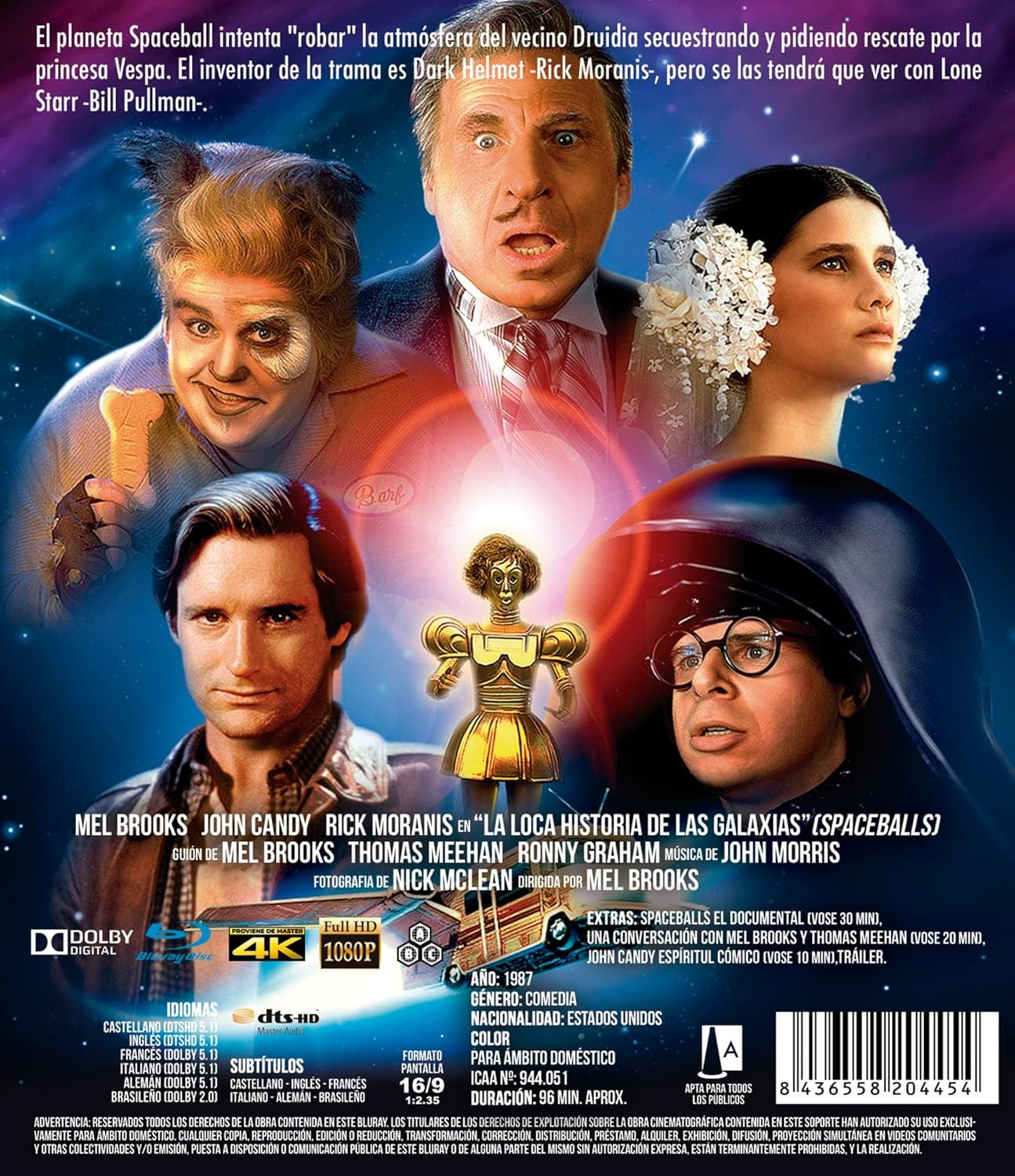 https://back.dvdstorespain.es/es/peliculas/129980-la-loca-historia-de-las-galaxias-blu-ray-1987-spaceballs-blu-ray-2026--8436558204454.html129980La Loca Historia de las Galaxias [Blu-ray] (1987) SpaceballsEl planeta Spaceball intenta "robar" la atmósfera del vecino Druidia secuestrando y pidiendo rescate por la princesa Vespa. El inventor de la trama es Dark Helmet -Rick Moranis-, pero se las tendrá que ver con Lone Starr -Bill Pullman-. https://dvdstorespain.es/1141173-home_default/la-loca-historia-de-las-galaxias-blu-ray-1987-spaceballs-blu-ray-2026-.jpg10.7025instock10.702510.7025002026-03-01T07:32:21+0100/Inicio/Inicio/Blu-ray/Inicio/Películas/Inicio/Nuevos