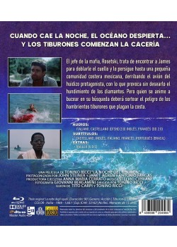 **La Noche del Tiburón [Blu-ray] (1988), La notte degli squali:** En las profundidades del océano, un hombre se enfrenta a una batalla épica contra las criaturas más temidas del mar. La película sigue a David Ziegler, un ex agente de la CIA, quien tras retirarse se dedica a la investigación de tiburones en las aguas del Caribe. Sin embargo, su tranquila vida toma un giro dramático cuando descubre un cargamento de cocaína escondido en el vientre de un tiburón. A medida que intenta destapar la conexión entre el narcotráfico y los tiburones, David se ve envuelto en una red de corrupción y violencia, con traficantes despiadados que harán todo lo posible para proteger su negocio. La película mezcla hábilmente el suspense, la acción y el terror, con escenas subacuáticas que mantienen al espectador al borde del asiento. Mientras David lucha por sobrevivir y proteger a sus seres queridos, la amenaza de los tiburones acecha en cada momento, haciendo de "La Noche del Tiburón" un thriller emocionante que explora las profundidades del valor humano y la lucha contra la adversidad.