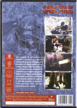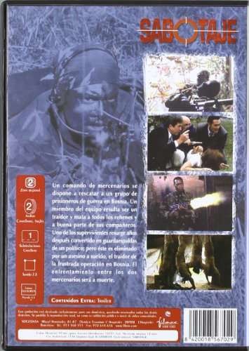 Uno de los supervivientes resurge años después convertido en guardaespaldas de un político; pero éste es eliminado por un asesino a sueldo, el traidor de la frustrada operación en Bosnia. El enfrentamiento entre los dos mercenarios será a muerte...https://dvdstorespain.es/637875-home_default/sabotaje-dvd-1996-sabotage.jpg3.3058instock3.30583.3058002015-05-01T18:23:33+0200/Inicio/Inicio/DVD/Inicio/Películas/Inicio/Nuevos
