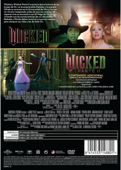 https://back.dvdstorespain.es/es/peliculas/130025-wicked-12-dvd-dvd-2026--8414533148801.html130025Wicked 1+2 [DVD] (2024, 2025)<p><b>Wicked, 2024</b><b> (Wicked: Part One)</b><br />Ambientada en la Tierra de Oz, mucho antes de la llegada de Dorothy Gale desde Kansas. Elphaba es una joven incomprendida por su inusual color verde que aún no ha descubierto su verdadero poder. Glinda es una popular joven marcada por sus privilegios y su ambición que aún no ha descubierto su verdadera pasión. Las dos se conocen como estudiantes de la Universidad Shiz, en la fantástica Tierra de Oz, y forjan una insólita pero profunda amistad. La trama abarca los acontecimientos del primer acto del musical de Broadway. </p><p><b>Wicked: Parte II, 2025</b><b> (Wicked: For Good)</b><br />Segunda parte de la adaptación cinematográfica del musical de Broadway. El capítulo final de la historia jamás contada de las brujas de Oz comienza con Elphaba y Glinda distanciadas y viviendo las consecuencias de sus respectivas decisiones. Mientras la multitud alza su clamor contra la Bruja Malvada, ambas deberán unirse una vez más. Con su singular amistad convertida en el punto de inflexión de su futuro, tendrán que mirarse a los ojos con honestidad y compasión para afrontar su transformación personal y cambiar el destino de todo Oz. </p>https://dvdstorespain.es/1142073-home_default/wicked-12-dvd-dvd-2026-.jpg20.5785instock20.578520.5785002026-03-02T20:46:49+0100/Inicio/Inicio/DVD/Inicio/Películas/Inicio/Nuevos