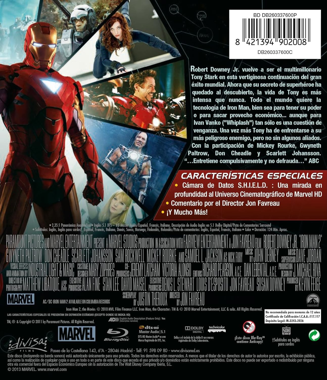 https://back.dvdstorespain.es/es/peliculas/130129-iron-man-2-blu-ray-blu-ray-2026--8421394902008.html130129Iron Man 2 [Blu-ray] (2010)El mundo ya sabe que el multimillonario Tony Stark (Robert Downey Jr.) es Iron Man, el superhéroe enmascarado. A pesar de las presiones del gobierno, la prensa y la opinión pública para que comparta su tecnología con el ejército, Tony es reacio a desvelar los secretos de la armadura de Iron Man, porque teme que esa información caiga en en manos de irresponsables. Con Pepper Potts (Gwyneth Paltrow) y James “Rhodey” Rhodes (Don Cheadle) a su lado, Tony forja alianzas nuevas y se enfrenta a nuevas y poderosas fuerzas. https://dvdstorespain.es/1143952-home_default/iron-man-2-blu-ray-blu-ray-2026-.jpg11.9835instock11.983511.9835002026-03-05T19:46:06+0100/Inicio/Inicio/Blu-ray/Inicio/Películas/Inicio/Nuevos