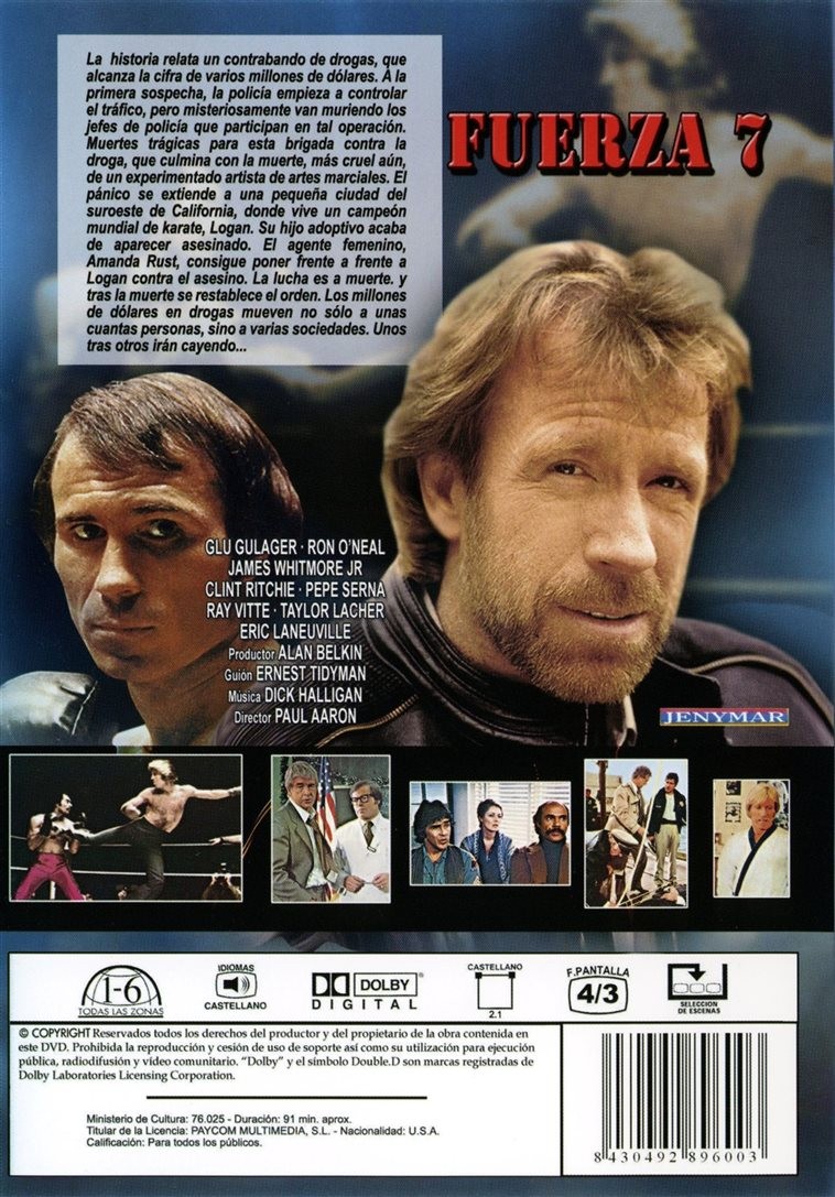 https://back.dvdstorespain.es/es/peliculas/130198-fuerza-7-dvd--8430492896003.html130198Fuerza 7 [DVD] (1979) a Force of OneUn veterano de Vietnam experto en artes marciales tiene que entrenar a un escuadrón antinarcóticos. Su mejor alumno es una chica desmotivada, cuya actitud cambia cuando su hijo es asesinado.https://dvdstorespain.es/1153075-home_default/fuerza-7-dvd-.jpg7.2727instock7.27277.2727002026-03-11T20:15:10+0100/Inicio/Inicio/DVD/Inicio/Películas/Inicio/Nuevos/Inicio/Homenaje a Chuck Norris