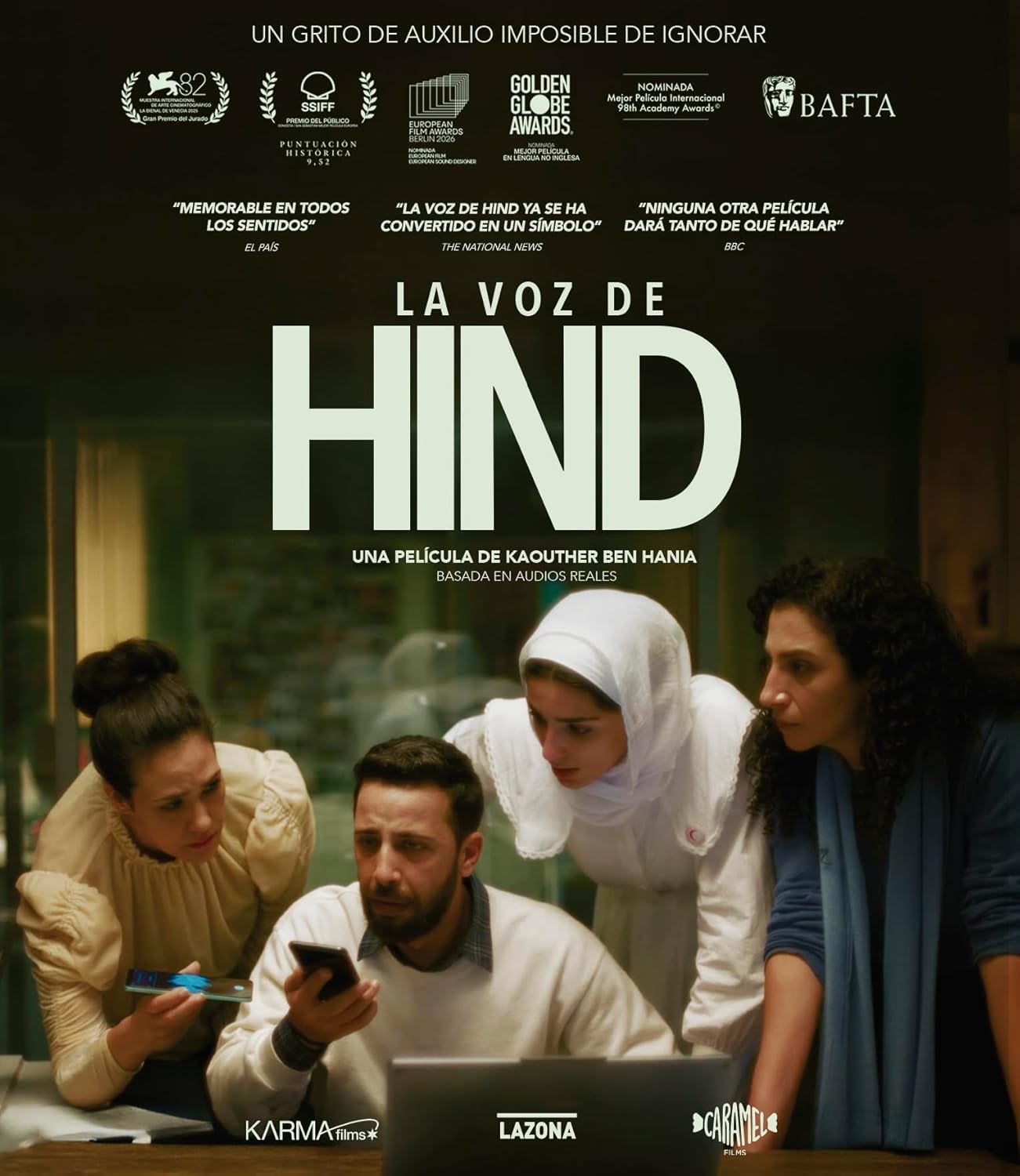 29 de enero de 2024. Los voluntarios de la Media Luna Roja reciben una llamada de emergencia. Una niña de 6 años está atrapada en un coche bajo fuego en Gaza, suplicando ser rescatada. Mientras intentan mantener el contacto telefónico con ella, hacen todo lo posible para enviarle una ambulancia. Su nombre: Hind Rajab.