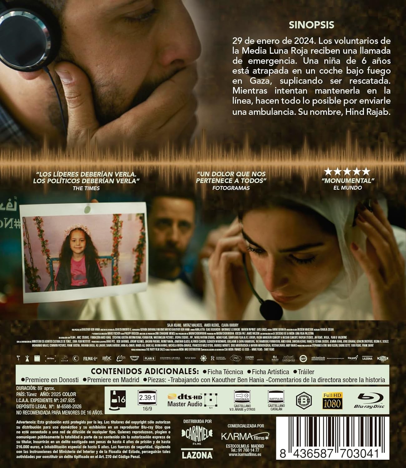 https://back.dvdstorespain.es/es/peliculas/130201-la-voz-de-hind-blu-ray-2026--8436587703041.html130201La Voz de Hind [Blu-ray] (2025) Sawt al-Hind Rajab29 de enero de 2024. Los voluntarios de la Media Luna Roja reciben una llamada de emergencia. Una niña de 6 años está atrapada en un coche bajo fuego en Gaza, suplicando ser rescatada. Mientras intentan mantener el contacto telefónico con ella, hacen todo lo posible para enviarle una ambulancia. Su nombre: Hind Rajab. https://dvdstorespain.es/1145683-home_default/la-voz-de-hind-blu-ray-2026-.jpg13.1405instock13.140513.1405002026-03-11T21:30:02+0100/Inicio/Inicio/Blu-ray/Inicio/Películas/Inicio/Nuevos