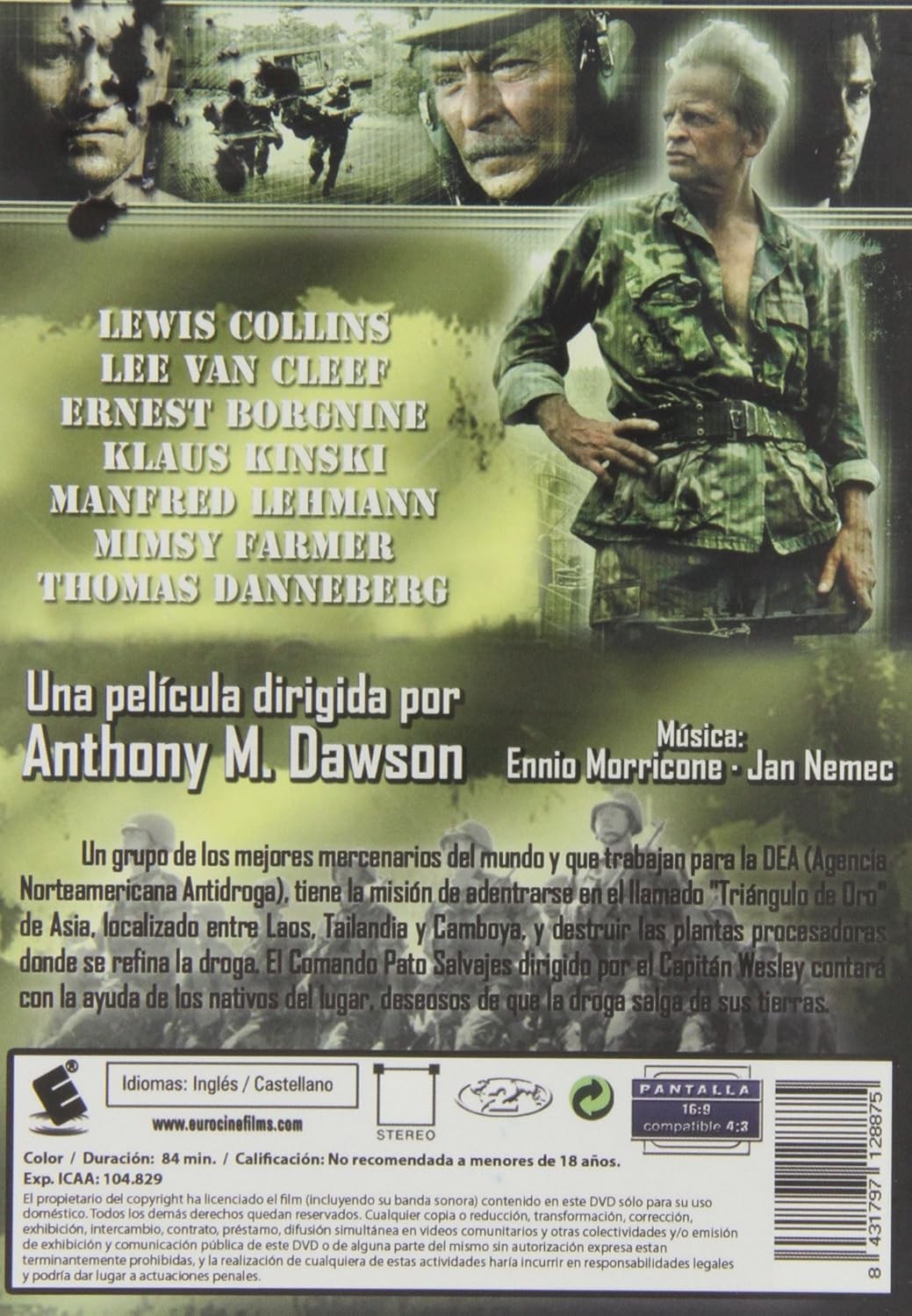 https://back.dvdstorespain.es/es/peliculas/130260-comando-patos-salvajes-dvd-1984-geheimcode-wildgaense-8431797128875.html130260Comando Patos Salvajes [DVD] (1984) Geheimcode: WildgänseUn grupo de los mejores mercenarios del mundo y que trabajan para la DEA (Agencia Norteamericana Antidroga), tiene la misión de adentrarse en el llamado "Triángulo de Oro" de Asia, localizado entre Laos, Tailandia y Camboya, y destruir las plantas procesadoras donde se refina la droga. El Comando Pato Salvajes dirigido por el Capitán Wesley contará con la ayuda de los nativos del lugar, deseosos de que la droga salga de sus tierras.https://dvdstorespain.es/1146607-home_default/comando-patos-salvajes-dvd-1984-geheimcode-wildgaense.jpg4.6281instock4.62814.6281002026-03-13T02:15:02+0100/Inicio/Inicio/DVD/Inicio/Películas/Inicio/Nuevos
