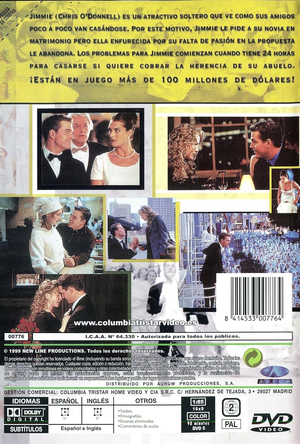 https://back.dvdstorespain.es/es/peliculas/130264-el-soltero-dvd-2005--8435175950898.html130264El Soltero [DVD] (1999) The BachelorJimmie siempre ha tenido claro cuales son las tres cosas importantes de la vida: permanecer soltero, permanecer soltero y permanecer soltero. Pero todo cambia cuando muere su abuelo y le deja en herencia la fabulosa cifra de 20 millones de dólares con una sola condición: que contraiga matrimonio antes de los 33 años. Para ese momento sólo faltan 24 horas y todas las novias y ex-novias de Jimmie parecen haberse conjugado para darle calabazas. https://dvdstorespain.es/1146639-home_default/el-soltero-dvd-2005-.jpg12.3967instock12.396712.3967002026-03-13T02:30:02+0100/Inicio/Inicio/DVD/Inicio/Películas/Inicio/Nuevos