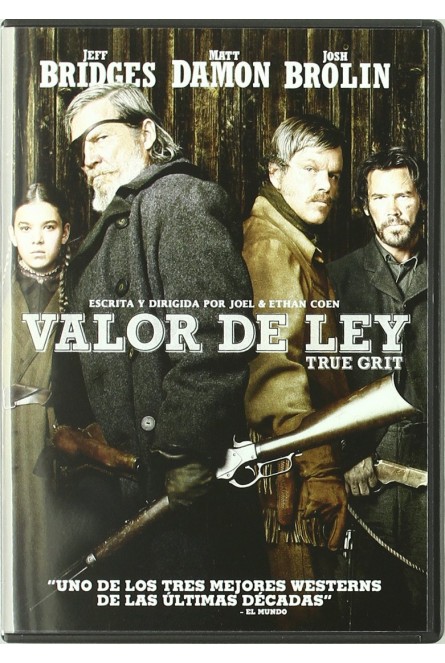 https://back.dvdstorespain.es/es/peliculas/130350-valor-de-ley-true-grit-dvd-2011--8414906899194.html130350Valor de Ley [DVD] (2010) True GritDespués del asesinato de su padre, Mattie Ross (Hailee Steinfeld), una chica de catorce años firmemente decidida a hacer justicia, contrata los servicios del veterano agente del Gobierno Rooster Cogburn (Jeff Bridges), borracho y excelente pistolero. Así ambos se ponen en camino y entran en territorio indio para dar caza a Tom Chaney (Josh Brolin) en compañía de LaBoeuf (Matt Damon), un ránger de Texas que busca al fugitivo por el asesinato de un senador... Nueva adaptación de una novela de Charles Portis, que ya había llevado al cine Henry Hathaway (True Grit, 1969) con John Wayne como protagonista. https://dvdstorespain.es/1148184-home_default/valor-de-ley-true-grit-dvd-2011-.jpg7.2727instock7.27277.2727002026-03-16T18:45:03+0100/Inicio/Inicio/DVD/Inicio/Películas/Inicio/Nuevos