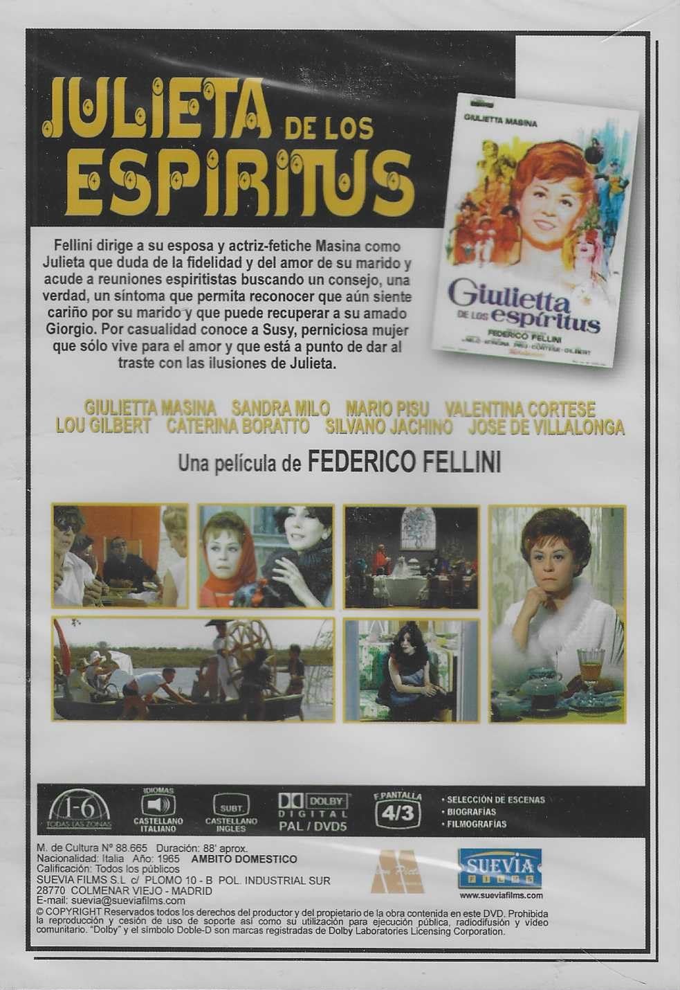 https://back.dvdstorespain.es/es/peliculas/130377-julieta-de-los-espiritus-dvd-dvd-2024--0605848120851.html130377Julieta de los Espíritus [DVD] (1965) Giulietta degli spiritiGiulietta, que duda de la fidelidad y del amor de su marido, acude a reuniones espiritistas buscando consejo y esperando una señal que le muestre que su marido aún siente cariño por ella y que puede recuperarlo. Por casualidad, conoce a Susy, una perniciosa mujer que sólo vive para el amor y que está a punto de destrozar las ilusiones de Giulietta. https://dvdstorespain.es/1148553-home_default/julieta-de-los-espiritus-dvd-dvd-2024-.jpg10.5785instock10.578510.5785002026-03-17T02:45:12+0100/Inicio/Inicio/DVD/Inicio/Películas/Inicio/Nuevos