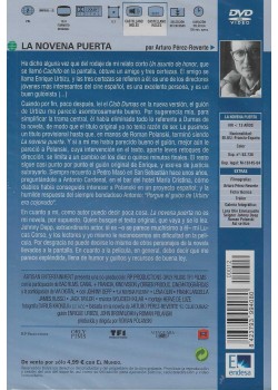https://back.dvdstorespain.es/es/peliculas/130380-la-novena-puerta-dvd-dvd-2024--0605848382433.html130380La Novena Puerta [DVD] (1999) The Ninth GateDean Corso (Johnny Depp) es un bibliófilo dotado de una sólida cultura, nervios de acero y pocos escrúpulos. Es, además, un hombre extremadamente minucioso y eficaz en su trabajo. Gracias a su reputación, Boris Balkan, un coleccionista de textos satánicos, le encarga una misión muy peligrosa: encontrar los dos últimos ejemplares del legendario manual de invocación satánica ”Las Nueve Puertas del Reino de las Sombras”; pero los recursos de Corso son ilimitados. De Nueva York a Toledo, de París a Sintra, se verá inmerso en un laberinto lleno de peligros y tentaciones, aterradoras sorpresas, violencia y muertes inesperadas.https://dvdstorespain.es/1148559-home_default/la-novena-puerta-dvd-dvd-2024-.jpg5.2893instock5.28935.2893002026-03-17T02:45:40+0100/Inicio/Inicio/DVD/Inicio/Películas/Inicio/Nuevos