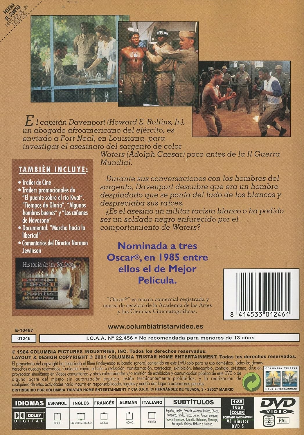 https://back.dvdstorespain.es/es/peliculas/130384-historia-de-un-soldado-dvd-1984-a-soldier-s-story-8414533012461.html130384Historia de un Soldado [DVD] (1984) A Soldier's StorySegunda Guerra Mundial (1939-1945). En el año 1944, un sargento negro es asesinado en una carretera solitaria cerca de la base militar de Louisiana. Debido a la presión ejercida por las autoridades y por la opinión pública el ejército envía al capitán Davenport, un abogado también de raza negra, para que se encargue de la investigación.https://dvdstorespain.es/1148666-home_default/historia-de-un-soldado-dvd-1984-a-soldier-s-story.jpg7.9339instock7.93397.9339002026-03-17T04:30:03+0100/Inicio/Inicio/DVD/Inicio/Películas/Inicio/Nuevos