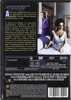 https://back.dvdstorespain.es/es/peliculas/130578-la-gata-sobre-el-tejado-de-zinc-dvd-2011--8436022339491.html130578La Gata sobre el Tejado de Zinc [DVD] (1958) Cat on a Hot Tin RoofLa inminente muerte del anciano patriarca de una acomodada familia sureña crea una gran tensión ambiental. Uno de sus hijos, Brick, indeciso y apático, se refugia en el alcohol y se muestra completamente indiferente ante la situación, pero Maggie, su mujer, no está dispuesta a contemplar impasible su destrucción. El otro hijo, Gooper, al igual que su esposa, es ambicioso y oportunista.https://dvdstorespain.es/1151437-home_default/la-gata-sobre-el-tejado-de-zinc-dvd-2011-.jpg8.2975instock8.29758.2975002026-03-19T18:45:15+0100/Inicio/Inicio/DVD/Inicio/Películas/Inicio/Nuevos