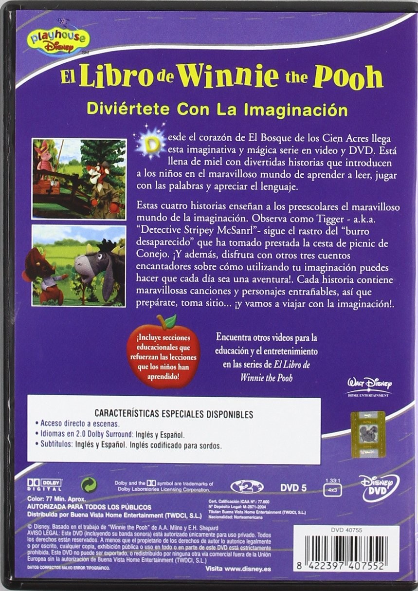 https://back.dvdstorespain.es/es/peliculas/130697-el-libro-de-winnie-the-pooh-diviertete-con-la-imaginacion-dvd-2008--8422397407552.html130697El Libro de Winnie The Pooh: Diviértete con la Imaginación [DVD] (2001) The Book of PoohSerie de TV (2001–2002). Segunda serie de animación basada en los personajes de A.A. Milne, emitida en Disney Channel. https://dvdstorespain.es/1153174-home_default/el-libro-de-winnie-the-pooh-diviertete-con-la-imaginacion-dvd-2008-.jpg5.9504instock5.95045.9504002026-03-20T14:00:04+0100/Inicio/Inicio/DVD/Inicio/Películas/Inicio/Nuevos