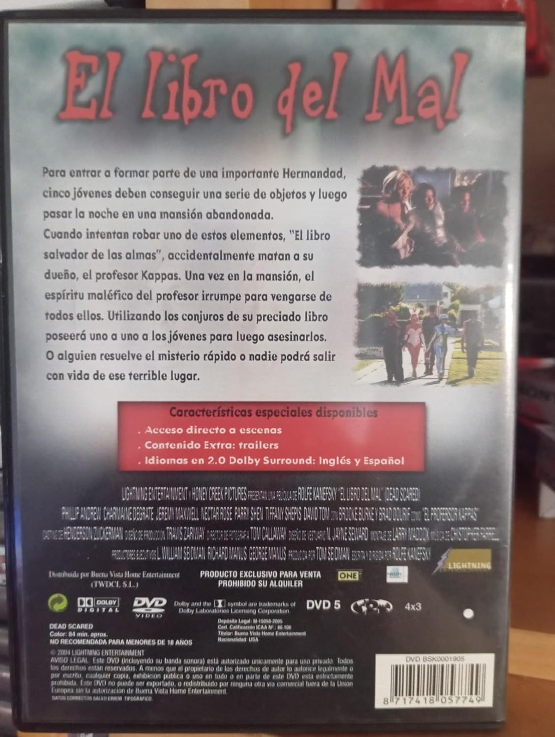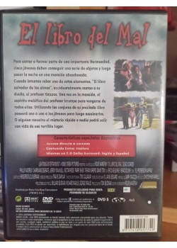 https://back.dvdstorespain.es/es/peliculas/130705-el-libro-del-mal-dvd--8717418057749.html130705El Libro del Mal [DVD] (2004) The Hazing (Dead Scared)Para entrar a formar parte de una importante Hermandad, cinco jóvenes deben conseguir una serie de objetos y luego pasar la noche en una mansión abandonada. Cuando intentan robar uno de estos elementos, "El Libro Salvador de las Almas", accidentalmente matan a su dueño, el profesor Kappas. Una vez en la mansión, el espíritu maléfico del profesor irrumpe para vengarse de todos ellos. Utilizando los conjuros de su preciado libro poseerá uno a uno a los jóvenes para luego asesinarlo. O alguien resuelve el misterio rápido o nadie podrá salir con vida de ese terrible lugar... https://dvdstorespain.es/1153297-home_default/el-libro-del-mal-dvd-.jpg11.9008instock11.900811.9008002026-03-20T15:45:09+0100/Inicio/Inicio/DVD/Inicio/Películas/Inicio/Nuevos