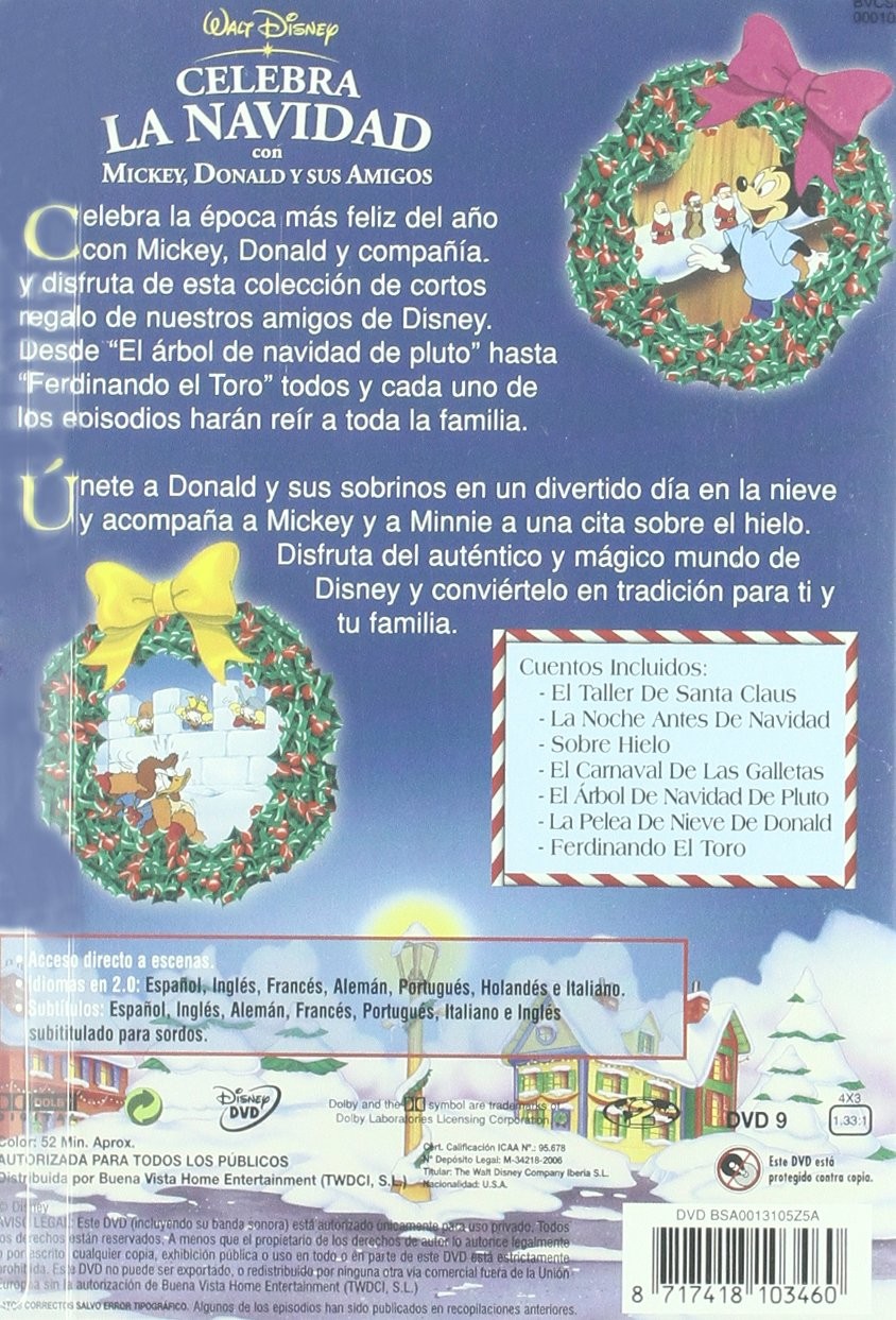 https://back.dvdstorespain.es/es/peliculas/130825-celebra-la-navidad-con-michey-donald-y-sus-amigos-dvd-2013--8717418103460.html130825La Navidad Mágica de Mickey [DVD] (2001) Mickey's Magical Christmas: Snowed in at the House of MouseÚnete a Mickey y a todos tus personajes favoritos Disney - juntos por vez primera - en su cálida celebración navideña y canta con ellos la maravillosa canción "Tu mejor Navidad". Cuando una fuerte tormenta de nieve deja a todos aislados, Mickey y sus invitados en la "House of Mouse", entre los que se encuentran Winnie the Pooh, Bella, Ariel, Blancanieves y muchos viejos y nuevos amigos, ayudarán a Donald a recuperar su deteriorado espíritu festivo. La diversión comienza cuando Minnie saca sus películas navideñas preferidas y todos empiezan a recordar. Sus mágicos recuerdos pronto empapan a todos de un cálido espíritu, incluyendo al gruñón Donald, que acaba convirtiéndose en la estrella de la noche. Cuando todos unen sus voces para cantar, se dan cuenta que "Tu mejor Navidad" es la que pasas junto a las personas que te aprecian. https://dvdstorespain.es/1155021-home_default/celebra-la-navidad-con-michey-donald-y-sus-amigos-dvd-2013-.jpg5.9504instock5.95045.9504002026-03-21T01:45:25+0100/Inicio/Inicio/DVD/Inicio/Películas/Inicio/Nuevos