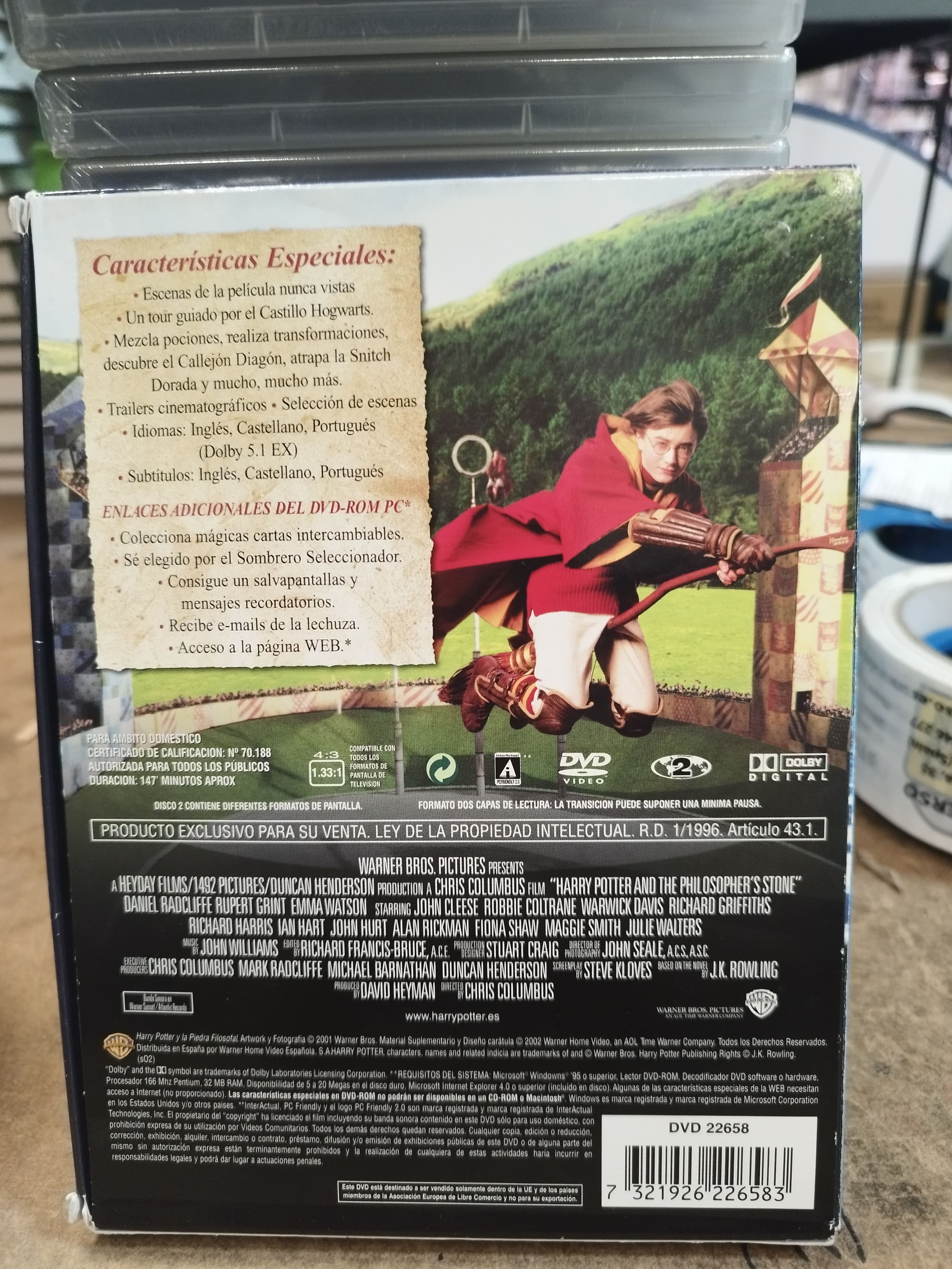 https://back.dvdstorespain.es/es/peliculas/130826-harry-potter-y-la-piedra-filosofal-dvd-segunda-mano-7321926226583.html130826Harry Potter y la Piedra Filosofal [DVD] (2001) Harry Potter and the Sorcerer's StoneEl día en que cumple once años, Harry Potter se entera de que es hijo de dos destacados hechiceros, de los que ha heredado poderes mágicos. En la escuela Hogwarts de Magia y Hechicería, donde se educa con otros niños que también tienen poderes especiales, aprenderá todo lo necesario para ser mago.https://dvdstorespain.es/1155208-home_default/harry-potter-y-la-piedra-filosofal-dvd-segunda-mano.jpg5.2893instock5.28935.2893002026-03-23T13:52:39+0100/Inicio/Inicio/DVD/Inicio/Películas