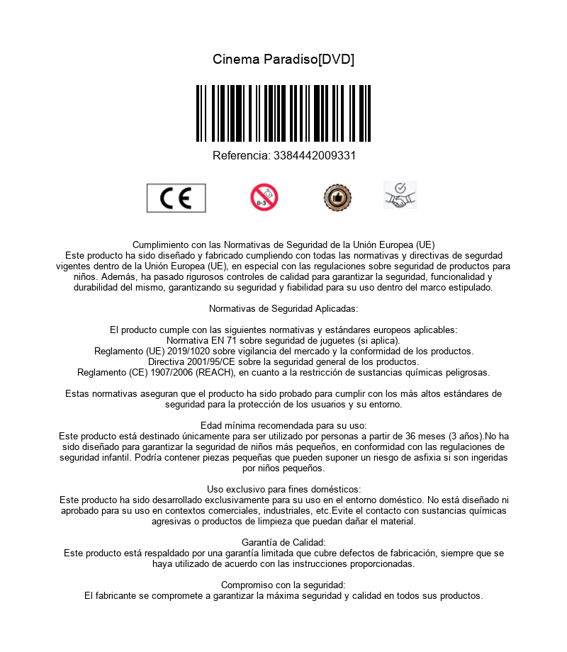 https://back.dvdstorespain.es/es/peliculas/130889-cinema-paradiso-dvd--3384442009331.html130889Cinema Paradiso [DVD] (1988) Nuovo Cinema Paradiso'Cinema Paradiso' es una historia de amor por el cine. Narra la historia de Salvatore, un niño de un pueblecito italiano en el que el único pasatiempo es ir al cine. Subyugado por las imágenes en movimiento, el chico cree ciegamente que el cine es magia; pero, un día, Alfredo, el operador, accede a enseñarle al pequeño los misterios y secretos que se ocultan detrás de una película. Salvatore va creciendo y llega el momento en el que debe abandonar el pueblo y buscarse la vida. Treinta años después recibe un mensaje, en el que le comunican que debe volver a casa. https://dvdstorespain.es/1155893-home_default/cinema-paradiso-dvd-.jpg4.6281instock4.62814.6281002026-03-24T15:31:03+0100/Inicio/Inicio/DVD/Inicio/Películas/Inicio/Nuevos