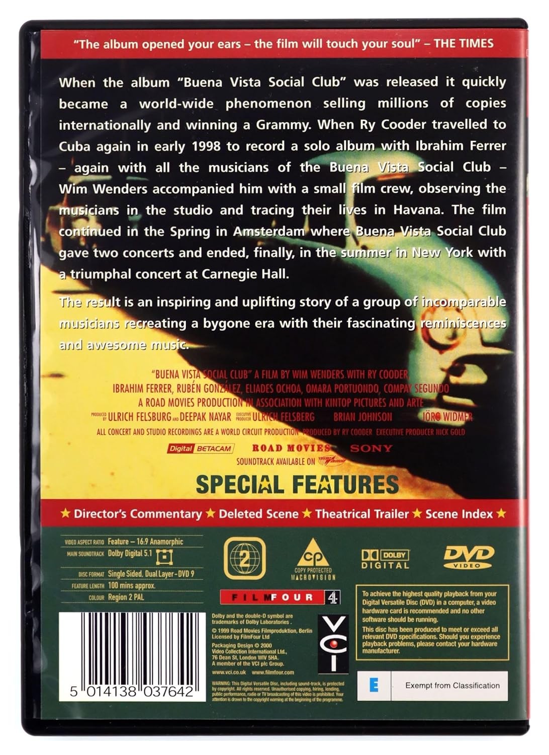 https://back.dvdstorespain.es/es/peliculas/130899-buena-vista-social-club-reino-unido-dvd--5014138295196.html130899Buena Vista Social Club [UK] [DVD] (1999)Cuando, en 1996, Ry Cooder viajó a Cuba para grabar un álbum con Ibrahim Ferrer y los músicos que habían colaborado en el disco Buena Vista Social Club (conocidos en Cuba como los Super-abuelos), Wenders lo siguió: observó a los músicos en el estudio y rastreó sus vidas en La Habana. Después rodó en Amsterdam, donde la banda dio dos conciertos y, finalmente, en Nueva York, en un recital espectacular en el legendario Carnegie Hall. https://dvdstorespain.es/1155996-home_default/buena-vista-social-club-reino-unido-dvd-.jpg7.2727instock7.27277.2727002026-03-24T15:45:42+0100/Inicio/Inicio/DVD/Inicio/Nuevos/Inicio/Mejores Documentales en Blu-Ray y DVD
