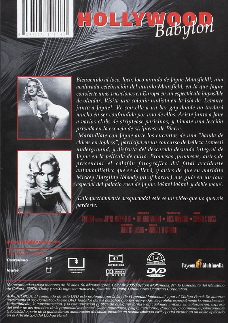 https://back.dvdstorespain.es/es/peliculas/130939-jane-masfield-hollywood-babylon-dvd--8437005121430.html130939Hollywood Babylon [DVD] (2025) Hollywood BabylonAntes de que la moralidad descendiera sobre Hollywood en 1934, la capital del cine se parecía mucho a Sodoma y Gomorra. La película 'Babylon', de Damien Chazelle, evoca esa época salvaje en la que la industria cinematográfica estaba impregnada de escándalos, orgías, asesinatos, mafia, drogas... nada estaba fuera de los límites.https://dvdstorespain.es/1156838-home_default/jane-masfield-hollywood-babylon-dvd-.jpg3.9669instock3.96693.9669002026-03-24T19:30:02+0100/Inicio/Inicio/DVD/Inicio/Películas/Inicio/Nuevos