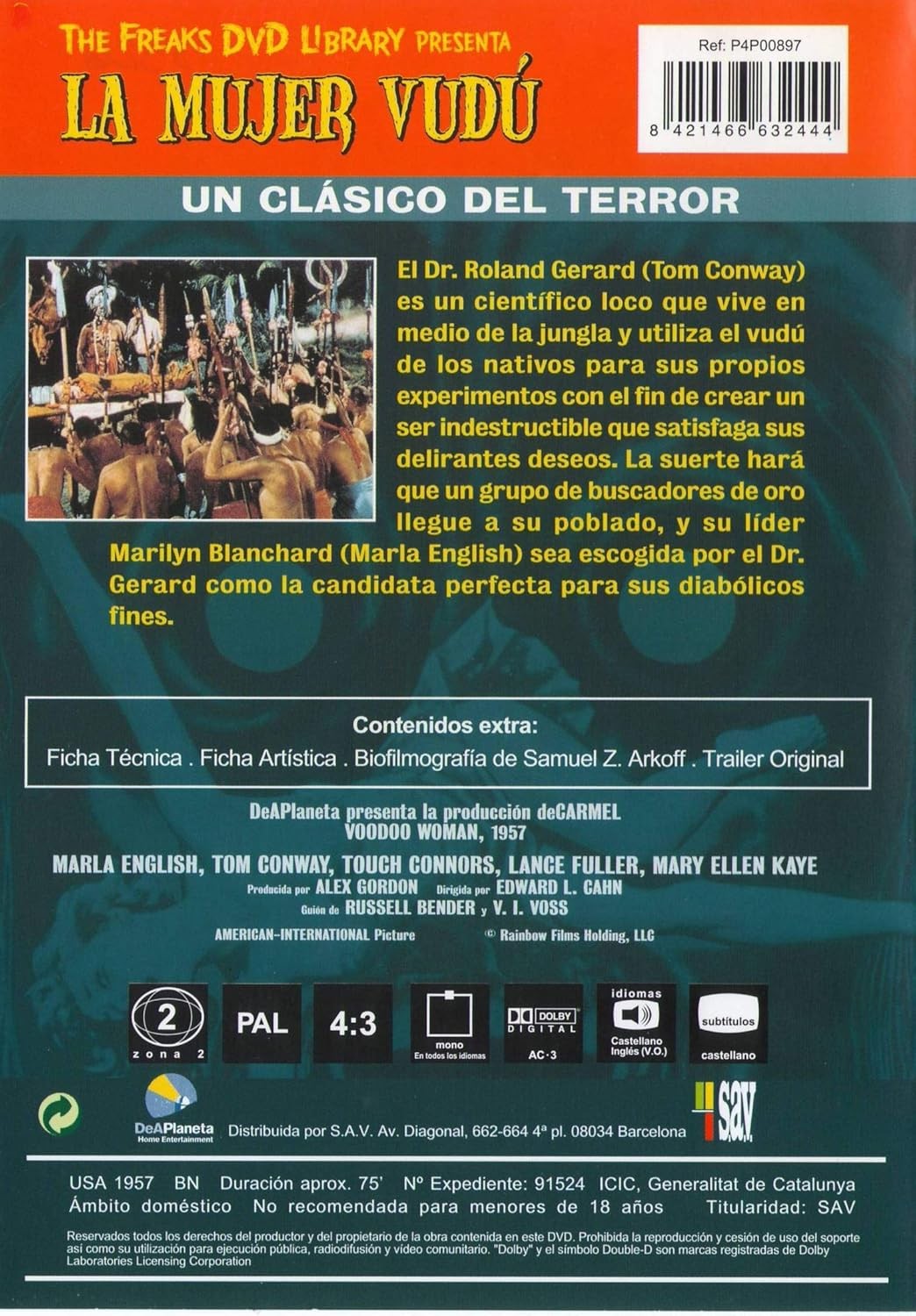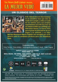 https://back.dvdstorespain.es/es/peliculas/131383-la-mujer-vudu-voodoo-woman-dvd--8421466632444.html131383La Mujer Vudú [DVD] (1957) Voodoo WomanUn investigador habita con su enfermiza esposa entre una tribu africana; uniendo medios científicos y la brujería nativa consigue convertir a una indígena en un monstruo inmortal al que controla telepáticamente. Mientras, una mujer sin escrúpulos organiza una expedición para internarse en la jungla, con el fin de conseguir los muñecos de vudú que fabrican los nativos, y que contienen oro. https://dvdstorespain.es/1162424-home_default/la-mujer-vudu-voodoo-woman-dvd-.jpg11.9008instock11.900811.9008002026-03-30T17:35:48+0200/Inicio/Inicio/DVD/Inicio/Películas/Inicio/Nuevos