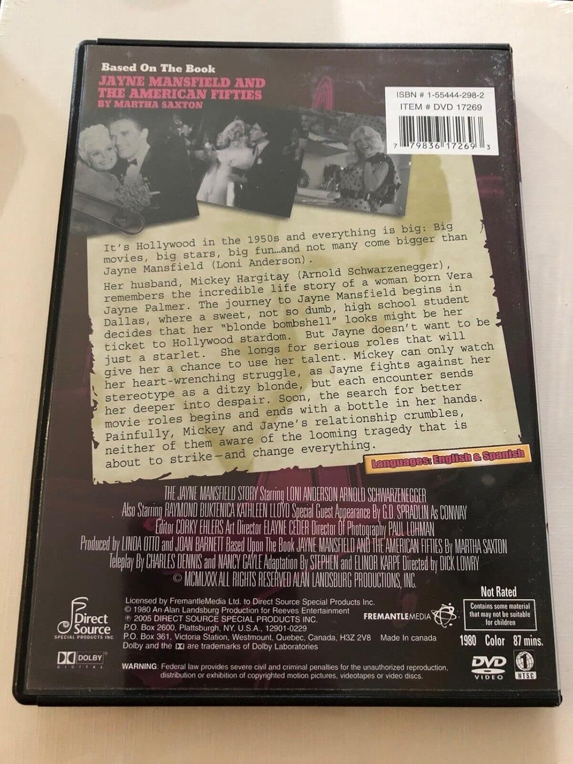 https://back.dvdstorespain.es/es/peliculas/131419-jayne-mansfield-story-dvd--0779836172693.html131419The Jayne Mansfield Story [DVD] (1980)Nacida Vera Jayne Palmer en 1933, Jayne Mansfield siempre supo que quería ser una estrella. Después de la pérdida de su padre a una temprana edad, Mansfield encontró consuelo en el escenario. Finalmente logro su meta de ser una celebridad. Aunque Mansfield fue comparada a menudo con Marilyn Monroe, nunca alcanzó su nivel de éxito. En cambio, su carrera parecía fallar tan rápido como subía, impulsando a Mansfield en una relativa oscuridad como una celebridad de nivel B. https://dvdstorespain.es/1162550-home_default/jayne-mansfield-story-dvd-.jpg27.2727instock27.272727.2727002026-03-30T17:46:16+0200/Inicio/Inicio/DVD/Inicio/Películas/Inicio/Nuevos