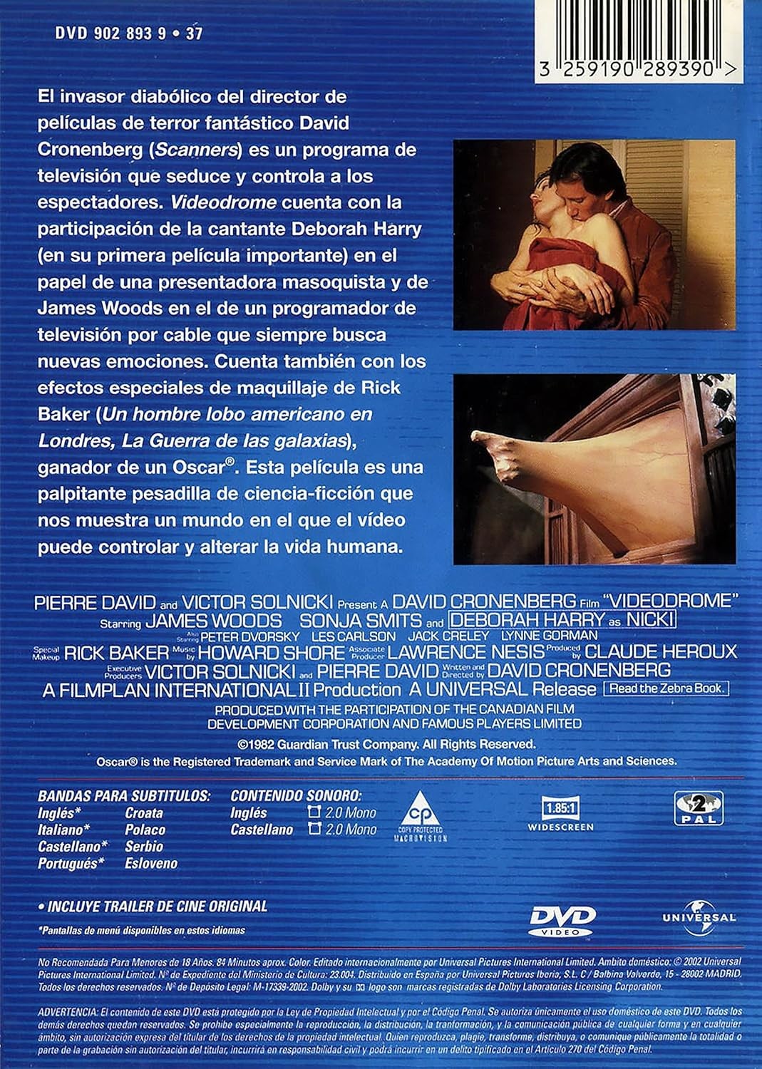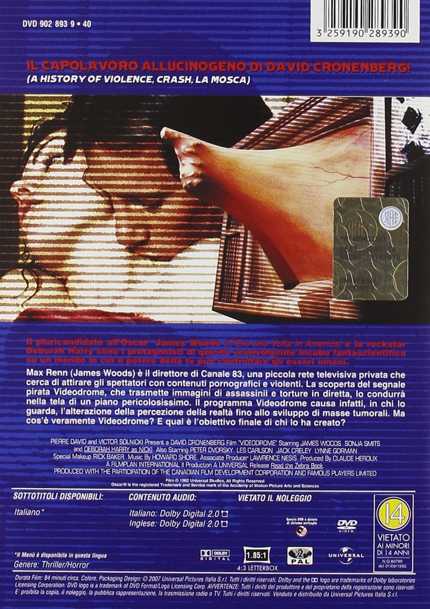 https://back.dvdstorespain.es/es/peliculas/131521-videodrome-dvd-2017--3259190289390.html131521Videodrome [DVD] (1983)Max Renn, responsable de un sórdido canal de televisión por cable, descubre un día una emisora pirata llamada "Videodrome" con contenidos muy violentos y realistas. Una palpitante pesadilla de ciencia-ficción que nos muestra un mundo en el que el vídeo puede controlar y alterar la vida humana. Considerada por Andy Warhol la "naranja mecánica" de los 80. https://dvdstorespain.es/1165688-home_default/videodrome-dvd-2017-.jpg14.5455instock14.545514.5455002026-03-31T19:30:10+0200/Inicio/Inicio/DVD/Inicio/Películas/Inicio/Nuevos