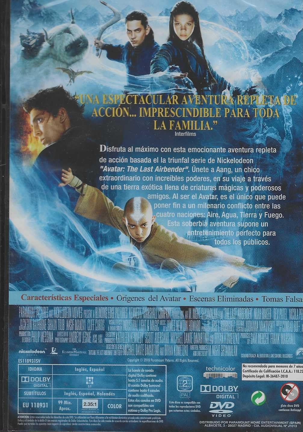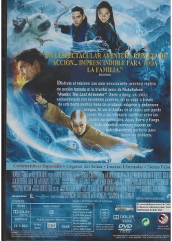 https://back.dvdstorespain.es/es/peliculas/131612-airbender-el-ultimo-guerrero-dvd-dvd-2024--0605848985146.html131612Airbender, el Último Guerrero [DVD] (2010) The Last AirbenderFantasía épica que adapta la serie "Avatar: The Last Airbender". La nación del Fuego declara la guerra a las naciones del Aire, el Agua y la Tierra. Tras un siglo de lucha, no hay esperanza alguna de acabar con tanta destrucción. Aang (Noah Ringer), el más reciente sucesor del ciclo del avatar, el único con poder para controlar los cuatro elementos, tendrá que viajar hasta el Polo Norte para dominarlos y poner fin a la guerra. En esta aventura se unen a él Katara, una Maestra Agua, y su hermano Sokka. Durante su viaje serán perseguidos por el príncipe Zuko (Dev Patel), el cual intenta capturar al avatar para recuperar su honor... https://dvdstorespain.es/1167272-home_default/airbender-el-ultimo-guerrero-dvd-dvd-2024-.jpg7.2727instock7.27277.2727002026-04-02T11:15:07+0200/Inicio/Inicio/DVD/Inicio/Películas/Inicio/Nuevos