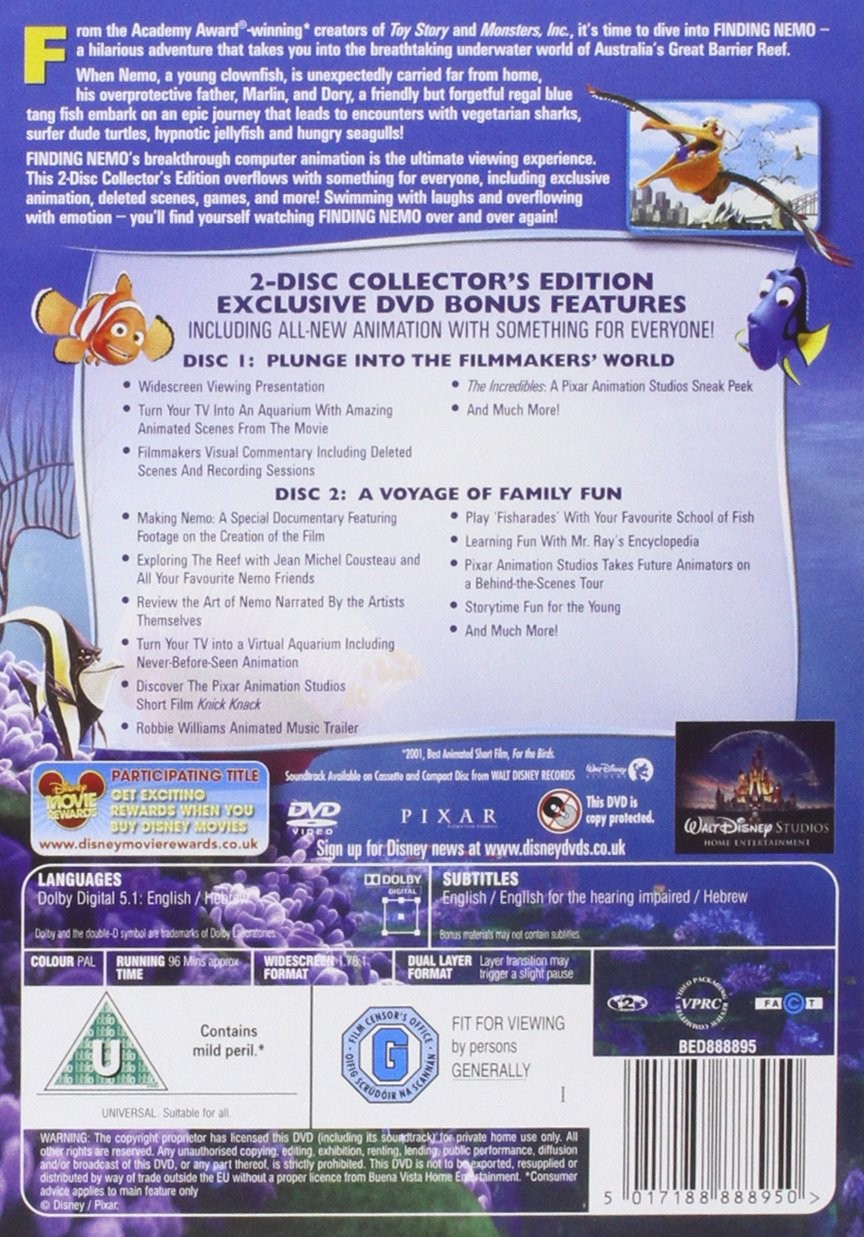 https://back.dvdstorespain.es/es/peliculas/131926-finding-nemo-reino-unido-dvd--5017188888950.html131926Finding Nemo [UK] [DVD] (2003)El pececillo Nemo, que es hijo único, es muy querido y protegido por su padre. Después de ser capturado en un arrecife australiano va a parar a la pecera de la oficina de un dentista de Sidney. Su tímido padre emprenderá una peligrosa aventura para rescatarlo. Pero Nemo y sus nuevos amigos tienen también un astuto plan para escapar de la pecera y volver al mar. https://dvdstorespain.es/1172598-home_default/finding-nemo-reino-unido-dvd-.jpg7.2727instock7.27277.2727002026-04-15T19:45:02+0200/Inicio/Inicio/DVD/Inicio/Películas/Inicio/Nuevos