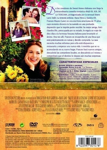 De los creadores de "Sweet Home Alabama" nos llega la extraordinaria comedia romántica "Bajo el sol de la Toscana", protagonizada por la sensual Diane Lane (Infiel, La tormenta perfecta) , Raoul Bova y Sandra Oh. Frances Mayes (Lane) es una escritora americana de 35 años, cuyo reciente divorcio le ha sumido en una profunda depresión que le impide poder escribir. Su mejor amiga, Patti (Sandra Oh), preocupada por su estado, le regala un viaje de diez días a la hermosa Toscana italiana para levantarle el ánimo. Una vez allí, Frances se encapricha de una finca que está prácticamente en ruinas y decide comprarla. La casa necesita muchas reformas pero ella está dispuesta a restaurarla y empezar una nueva vida. A medida que se va acomodando en su nuevo hogar, Frances hará nuevos amigos, descubrirá las costumbres locales, se descubrirá a sí misma y comprobará que el destino le depara aún muchas sorpresas.