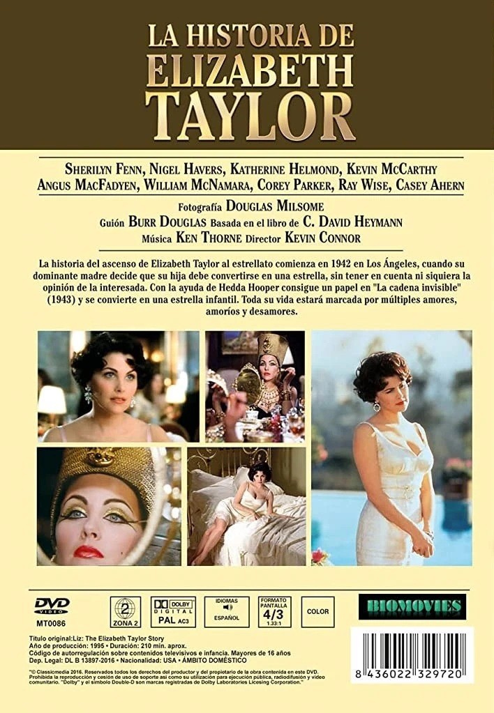 https://back.dvdstorespain.es/es/peliculas/33200-la-historia-de-elizabeth-taylor-dvd--8436022329720.html33200La Historia de Elizabeth Taylor [DVD] (1995) Liz: The Elizabeth Taylor StoryLa historia del ascenso de Elizabeth Taylor al estrellato comienza en 1942 en Los Ángeles, cuando su dominante madre decide que su hija debe convertirse en una estrella, sin tener en cuenta ni siquiera la opinión de la interesada. Con la ayuda de Hedda Hooper consigue un papel en "La cadena invisible" (1943) y se convierte en una estrella infantil. Toda su vida estará marcada por múltiples amores, amoríos y desamores.https://dvdstorespain.es/522669-home_default/la-historia-de-elizabeth-taylor-dvd-.jpg6.5289instockMapetac6.52896.5289002016-11-14T12:37:11+0100/Inicio/Inicio/DVD/Inicio/Películas/Inicio/Nuevos/Inicio/VELADA SP 20/Inicio/VELADA DE 75/Inicio/VELADA FR 75/Inicio/VELADA IT 75