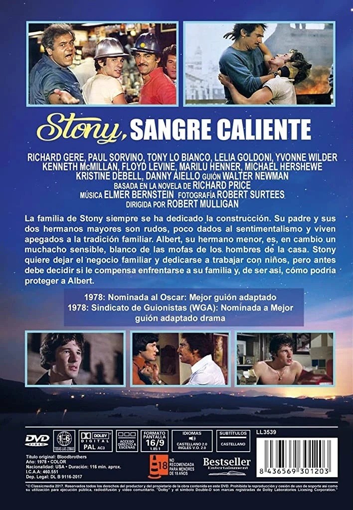 https://back.dvdstorespain.es/es/peliculas/35488-stony-sangre-caliente-bloodbrothers-1978-dvd--8436569301203.html35488Stony, Sangre Caliente [DVD] (1978) BloodbrothersLa familia de Stony siempre se ha dedicado la construcción. Su padre y sus dos hermanos mayores son rudos, poco dados al sentimentalismo y viven apegados a la tradición familiar. Albert, su hermano menor, es, en cambio un muchacho sensible, blanco de las mofas de los hombres de la casa. Stony quiere dejar el negocio familiar y dedicarse a trabajar con niños, pero antes debe decidir si le compensa enfrentarse a su familia y, de ser así, cómo podría proteger a Albert. https://dvdstorespain.es/519343-home_default/stony-sangre-caliente-bloodbrothers-1978-dvd-.jpg6.5289instockLlamentol6.52896.5289002017-06-08T09:16:42+0200/Inicio/Inicio/DVD/Inicio/Películas/Inicio/Nuevos/Inicio/18 AÑOS SI D&O