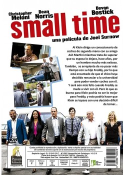 https://back.dvdstorespain.es/es/peliculas/35997-small-time-dvd-2013-8436569300916.html35997Small Time [DVD] (2013)Al (Christopher Meloni), un vendedor de coches antiguos de Los Ángeles tiene que vivir con el recuerdo de los buenos momentos pasados junto a su ex mujer (Bridget Moynahan), lamentándose por su abandono. A su vez, debe de encauzar la vida de su hijo Freddy (Devon Bostick). Este siempre le ha tomado como un modelo a seguir y quiere continuar con el negocio familiar, pero Al sabe que realmente lo que le conviene y debe hacer es ir a la universidad, por lo que tratará de convencerlo argumentándole que es lo mejor para su futuro. Una difícil tarea teniendo en cuenta que Freddy es un testarudo, no entra en razón y se niega a abandonar el hogar familiar.https://dvdstorespain.es/518306-home_default/small-time-dvd-2013.jpg3.2231instockLlamentol3.22313.2231002017-08-01T21:40:55+0200/Inicio/Inicio/DVD/Inicio/Películas/Inicio/Nuevos