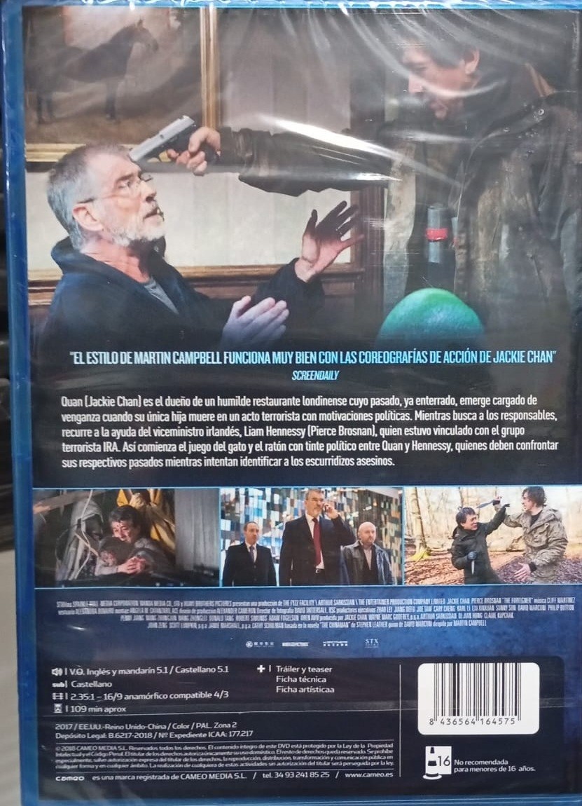 https://back.dvdstorespain.es/es/peliculas/41936-el-extranjero-dvd--8436564164575.html41936El Extranjero [DVD] (2017) The ForeignerLa historia de un humilde hombre de negocios, Quan (Jackie Chan), cuyo pasado erupciona en una venganza desenfrenada después de que su hija muera en un atentado terrorista motivado por aspectos políticos. En su búsqueda de los terroristas, Quan se ve atrapado en un juego del gato y el ratón con un político irlandés que colabora con el gobierno británico (Pierce Brosnan), cuyo pasado podría tener algo que ver con los asesinos.https://dvdstorespain.es/501729-home_default/el-extranjero-dvd-.jpg6.657instockCameo Media,S.L.6.6576.657002018-06-05T15:49:12+0200/Inicio/Inicio/DVD/Inicio/Películas/Inicio/Nuevos/Inicio/VELADA SP 20/Inicio/VELADA DE 75/Inicio/VELADA FR 75/Inicio/VELADA IT 75