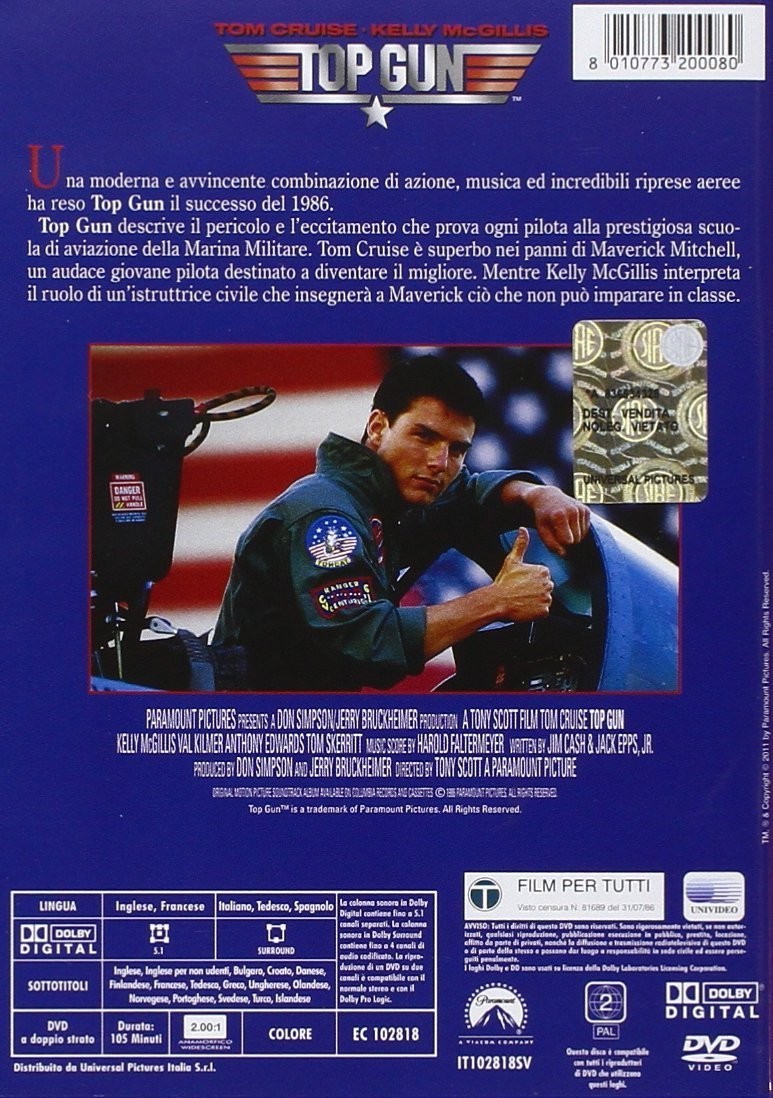 https://back.dvdstorespain.es/es/peliculas/5248-top-gun-italia-dvd--8436534533974.html5248Top Gun [DVD] (1986)La Marina de los Estados Unidos ha creado una escuela de élite para pilotos con el fin de sacar una promoción de expertos en técnicas de combate. En la academia, más conocida como Top Gun, a los mejores se les entrena para ser intrépidos y fríos al mismo tiempo, capaces de no perder los nervios en situaciones extremas y de no inmutarse al romper la barrera del sonido a los mandos de un F-14. A la escuela llega el joven Maverick, famoso por su temeraria aunque brillante forma de pilotar. https://dvdstorespain.es/675102-home_default/top-gun-italia-dvd-.jpg5.6198instock5.61985.6198002015-04-10T21:21:01+0200/Inicio/Inicio/DVD/Inicio/Películas/Inicio/Nuevos/Inicio/Homenaje a Val Kilmer