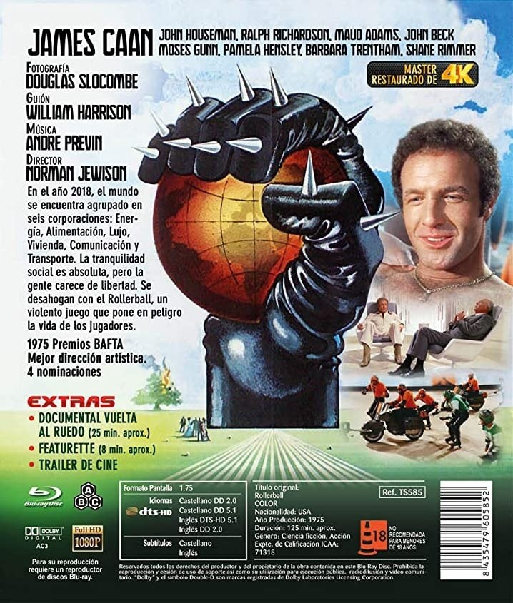 https://back.dvdstorespain.es/es/peliculas/85715-rollerball-blu-ray-1975-8435479605852.html85715Rollerball [Blu-ray] (1975)En el año 2018, el mundo se encuentra agrupado en seis corporaciones: Energía, Alimentación, Lujo, Vivienda, Comunicación y Transporte. La tranquilidad social es absoluta, pero la gente carece de libertad. Se desahogan con el Rollerball, un violento juego que pone en peligro la vida de los jugadores. https://dvdstorespain.es/441903-home_default/rollerball-blu-ray-1975.jpg9.6322instockResearch Entertainment9.63229.6322002020-08-19T00:45:55+0200/Blu-ray/Películas/Nuevos/18 AÑOS SI D&O