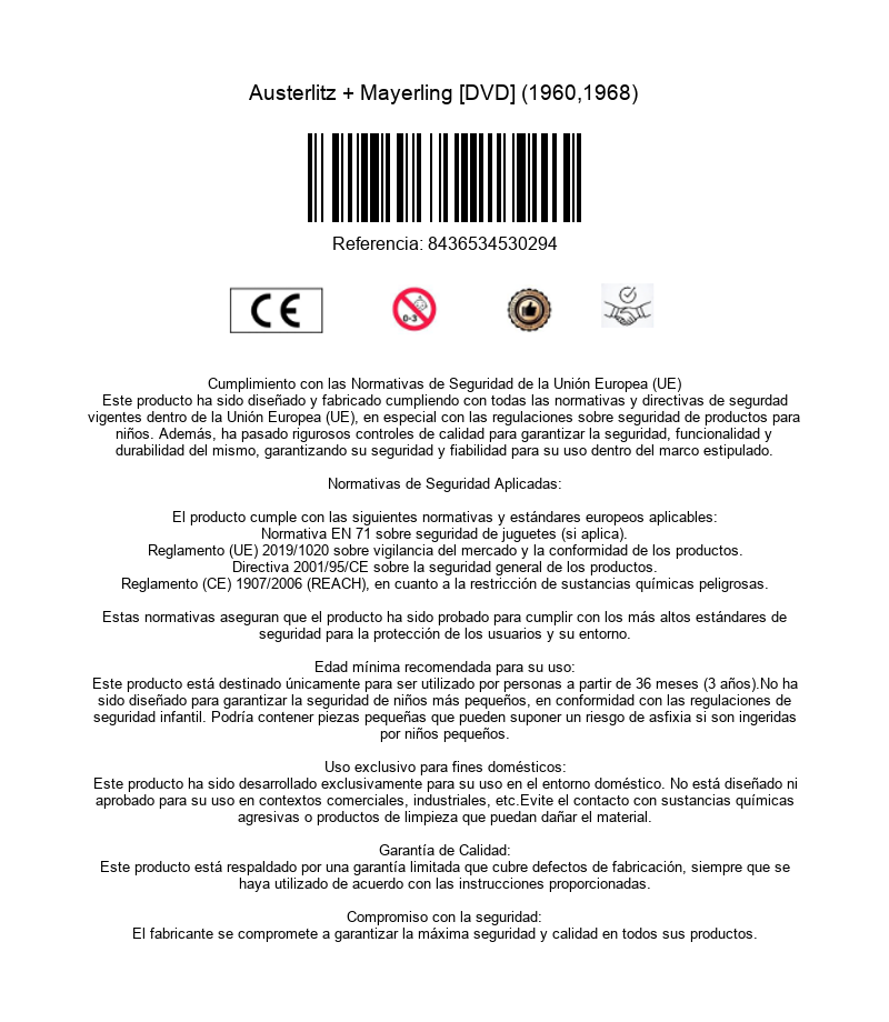El archiduque Rodolfo, heredero del Imperio Austro-Húngaro, lleva una vida tediosa a pesar de estar rodeado de toda clase de lujos. Incluso sus amoríos le aburren, pero un día conoce a Marie y se enamora perdidamente de ella. Sin embargo, el emperador Francisco José considera que Marie no es una mujer adecuada para ser emperatriz. https://dvdstorespain.es/702596-home_default/cine-epico-austerlitz-mayerling-dvd-.jpg5.2893instock5.28935.2893002021-06-23T00:35:10+0200/Inicio/Inicio/DVD/Inicio/Películas/Inicio/Nuevos