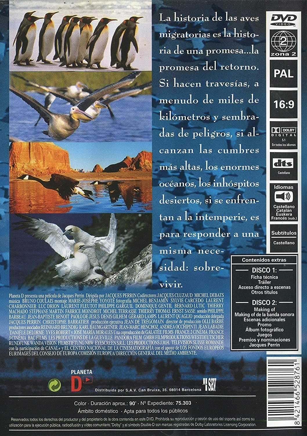 - Catalán (Dolby Digital 5.1), Francés (Dolby Digital 5.1), Español (Dolby Digital 5.1), Castellano (DTS 5.1)