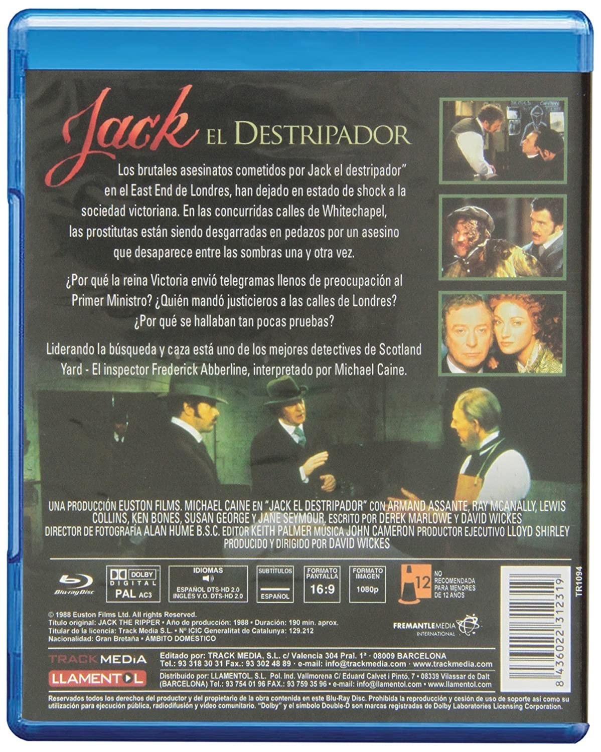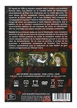 https://back.dvdstorespain.es/es/peliculas/9994-jack-el-destripador-blu-ray--8436022312319.html9994Jack el Destripador [Blu-ray]<div> <br /> Los brutales asesinatos cometidos por Jack, el destripador en el East End de Londres, han dejado en estado de shock a la sociedad victoriana. En las concurridas calles de Whitechapel, las prostitutas están siendo desgarradas en pedazos por un asesino que desaparece entre las sombras una y otra vez. ¿Por qué la reina Victoria envió telegramas llenos de preocupación al Primer Ministro? ¿Quién mandó justicieros a las calles de Londres? ¿Por qué se hallaban tan pocas pruebas? Liderando la búsqueda y caza está uno de los mejores detectives de Scotland Yard - El inspector Frederick Abberline, interpretado por Michael Caine. Premios: 1989: Ganadora de Globo de Oro. 1989: Ganadora de Emmy. </div>https://dvdstorespain.es/676048-home_default/jack-el-destripador-blu-ray-.jpg9.2562instock9.25629.2562002015-04-19T23:33:18+0200/Inicio/Inicio/DVD/Inicio/Películas/Inicio/NuevosDavid Wickes
