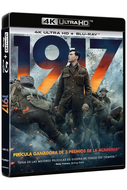 https://back.dvdstorespain.es/es/preventa/131093-1917-4k-uhd-bd-blu-ray-2026--8414533149112.html1310931917 [4K UHD, Blu-ray] (2019)En lo más crudo de la Primera Guerra Mundial, dos jóvenes soldados británicos, Schofield (George MacKay) y Blake (Dean-Charles Chapman) reciben una misión aparentemente imposible. En una carrera contrarreloj, deberán atravesar el territorio enemigo para entregar un mensaje que evitará un mortífero ataque contra cientos de soldados, entre ellos el propio hermano de Blake.https://dvdstorespain.es/1158415-home_default/1917-4k-uhd-bd-blu-ray-2026-.jpg17.7686instock17.768617.7686002026-03-25T03:16:55+0100/Inicio/Inicio/Películas/Inicio/4K-UHD/Inicio/Preventa