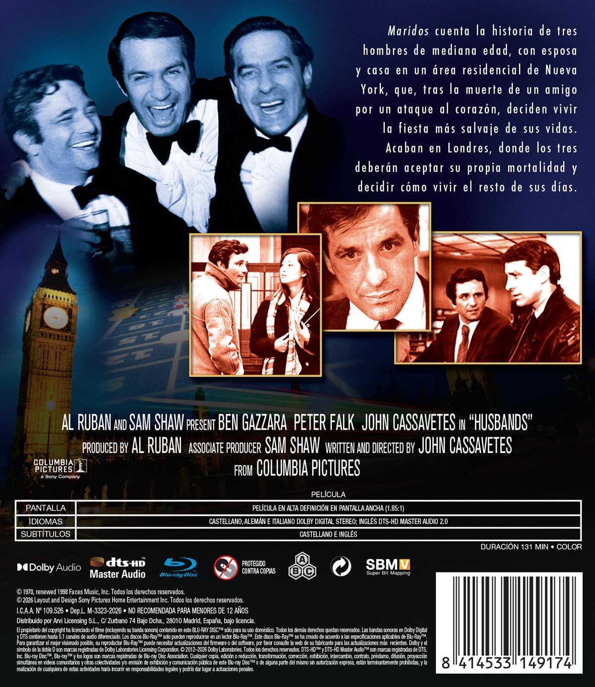 https://back.dvdstorespain.es/es/preventa/131098-maridos-bd-blu-ray-2026--8414533149174.html131098Maridos [Blu-ray] (1970) HusbandsEl dentista Gus, el publicista Harry y el periodista Archie son tres amigos casados y vecinos de Long Island que se reúnen para asistir al entierro de un amigo, muerto de un ataque cardíaco. Tras el entierro, deciden ir a un club de Manhattan a jugar al baloncesto y a nadar. La ocasión es propicia para que reflexionen sobre sus vidas, sus amores y sus relaciones, cuestiones que no se habían detenido a examinar hasta ese momento; y, de pronto, les asalta la sensación de que la juventud se les ha ido inconscientemente de las manos. https://dvdstorespain.es/1158423-home_default/maridos-bd-blu-ray-2026-.jpg11.7355instock11.735511.7355002026-03-25T03:17:34+0100/Inicio/Inicio/Blu-ray/Inicio/Películas/Inicio/Preventa