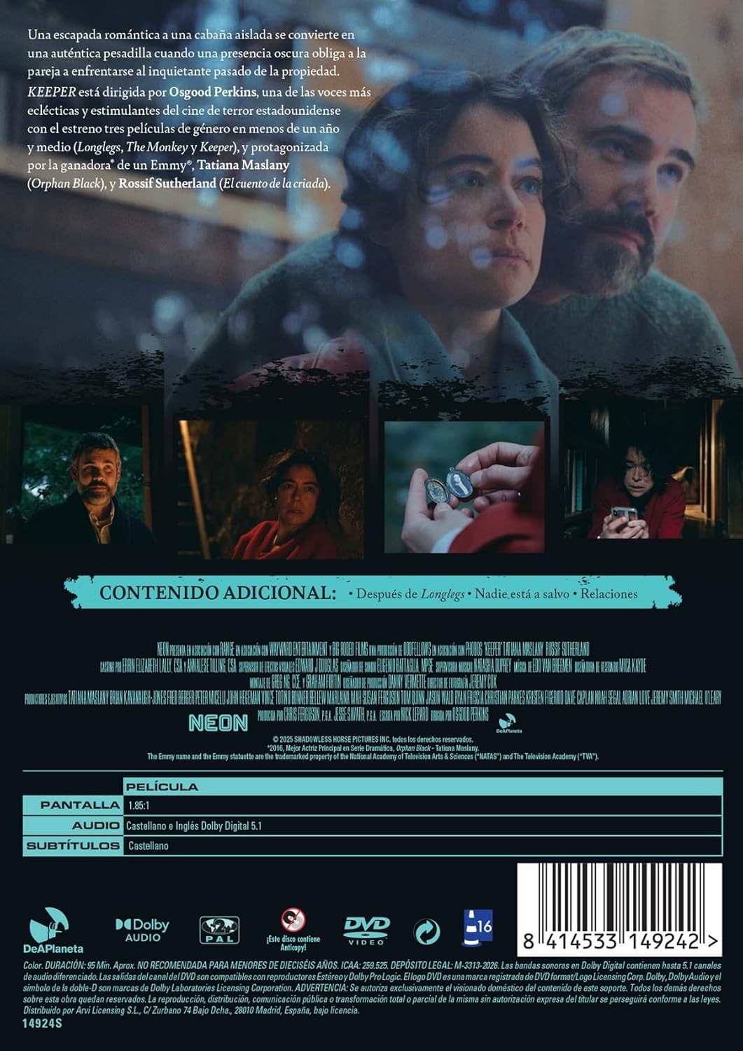 https://back.dvdstorespain.es/es/preventa/131101-keeper-dvd-dvd-2026--8414533149242.html131101Keeper [DVD] (2025)Una pareja, para celebrar su aniversario, hace una escapada romántica de fin de semana a una cabaña aislada. Cuando Malcolm (Sutherland) regresa repentinamente a la ciudad, Liz (Maslany) se encuentra aislada y en presencia de un mal indescriptible que desvela los horripilantes secretos de la cabaña.https://dvdstorespain.es/1158429-home_default/keeper-dvd-dvd-2026-.jpg17.7686instock17.768617.7686002026-03-25T03:17:56+0100/Inicio/Inicio/DVD/Inicio/Películas/Inicio/Preventa