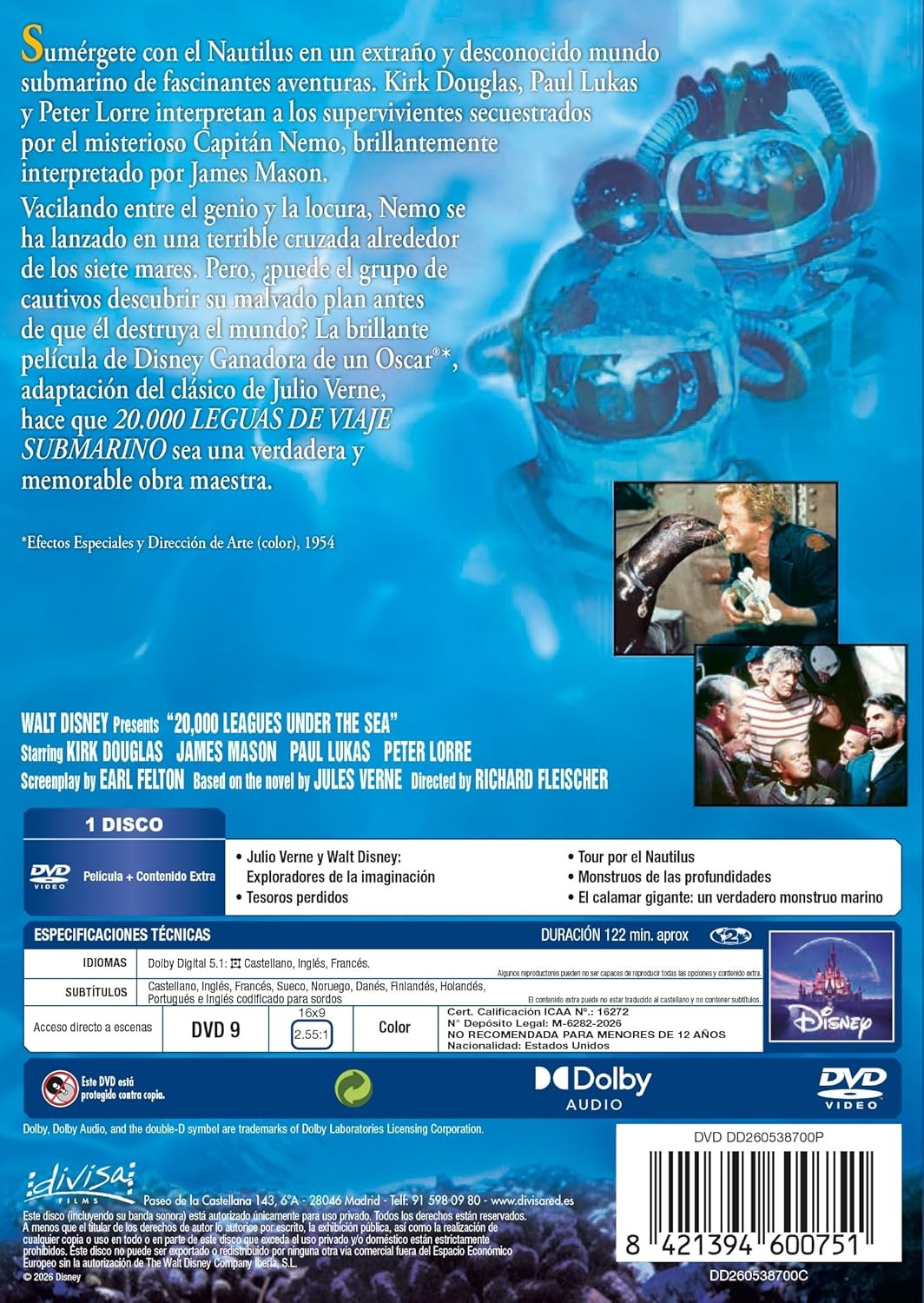 https://back.dvdstorespain.es/es/preventa/131597-20000-leguas-de-viaje-submarino-20000-leagues-under-the-sea-1954-richard-fleischer-dvd-dvd-2026--8421394600751.html13159720.000 Leguas de Viaje Submarino [DVD] (1954) 20,000 Leagues Under the SeaAdaptación de la novela homónima de Julio Verne. En 1870, debido a los relatos de marineros que aseguran haber visto un monstruo marino al sur del Pacífico, los Estados Unidos fletan un buque de guerra para destruir a la bestia que altera la tranquilidad de los mares. Pero, cuando el monstruo los ataca, de nada sirve todo su poderío bélico para evitar el desastre. Tras el hundimiento del buque, los tripulantes son rescatados por el propio "monstruo", que resulta ser un buque capaz de sumergirse en el mar, algo inédito hasta entonces.https://dvdstorespain.es/1167024-home_default/20000-leguas-de-viaje-submarino-20000-leagues-under-the-sea-1954-richard-fleischer-dvd-dvd-2026-.jpg9.9174instock9.91749.9174002026-04-02T04:15:30+0200/Inicio/Inicio/DVD/Inicio/Películas/Inicio/Preventa