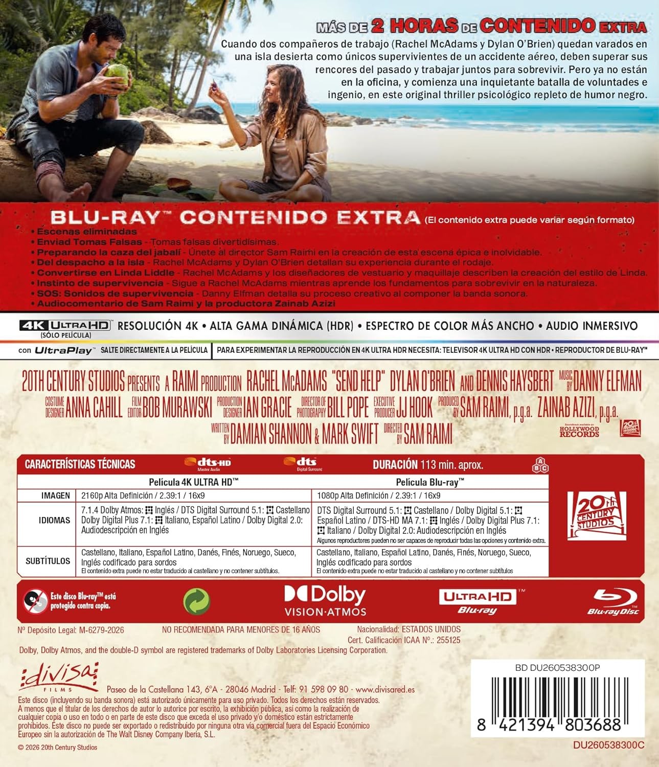https://back.dvdstorespain.es/es/preventa/131601-send-help-enviad-ayuda-2026-sam-raimi-4k-uhd-blu-ray-blu-ray-2026--8421394803688.html131601Send Help (Enviad Ayuda) [4K UHD, Blu-ray] (2026) Send HelpDespués de que un accidente de avión deje varados en una isla remota a una competente empleada y a su insoportable jefe, ella deberá utilizar sus habilidades de supervivencia para mantenerlos a ambos con vida, a pesar de su difícil relación.https://dvdstorespain.es/1167032-home_default/send-help-enviad-ayuda-2026-sam-raimi-4k-uhd-blu-ray-blu-ray-2026-.jpg21.4876instock21.487621.4876002026-04-02T04:16:17+0200/Inicio/Inicio/Películas/Inicio/4K-UHD/Inicio/Preventa